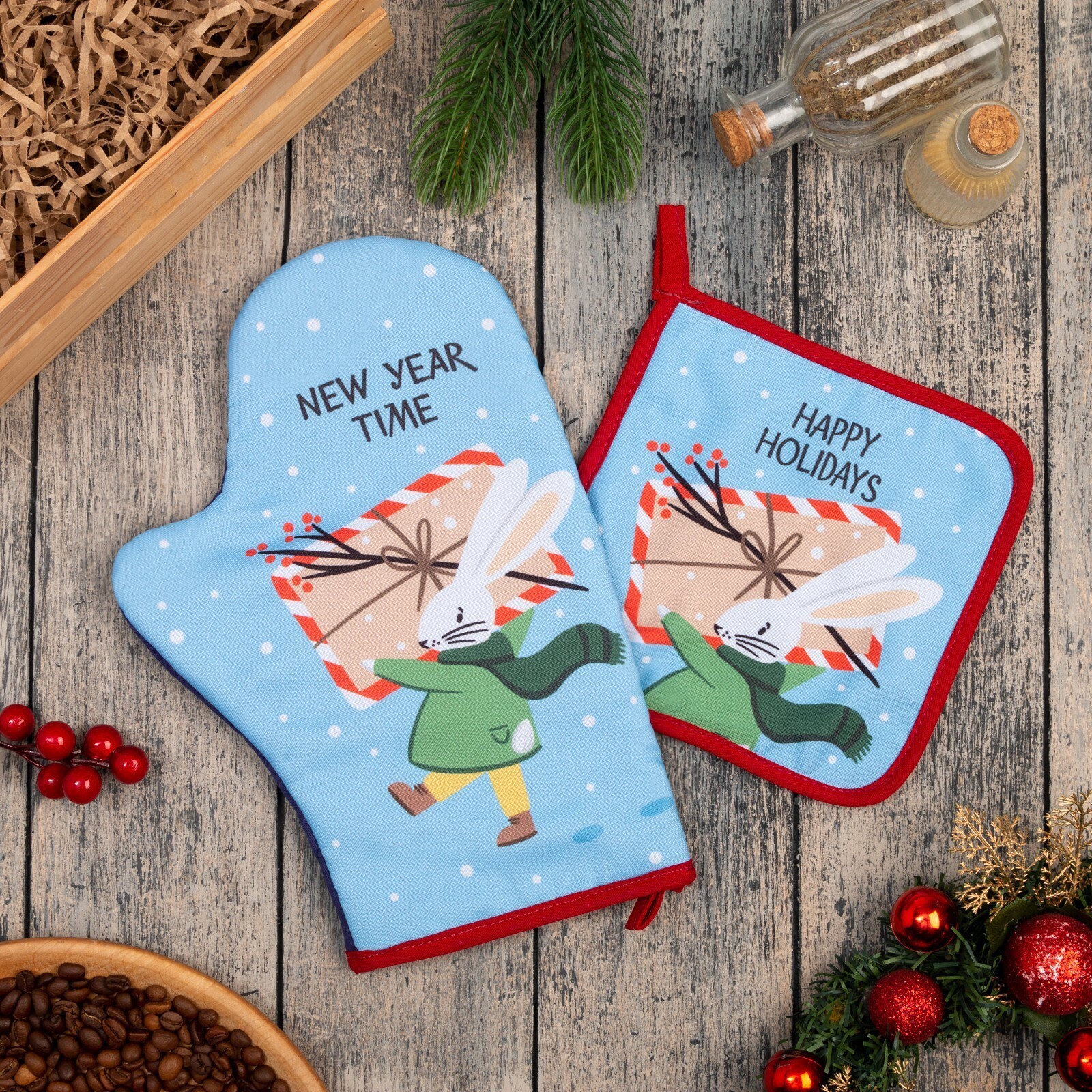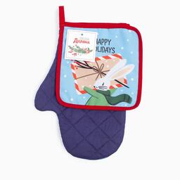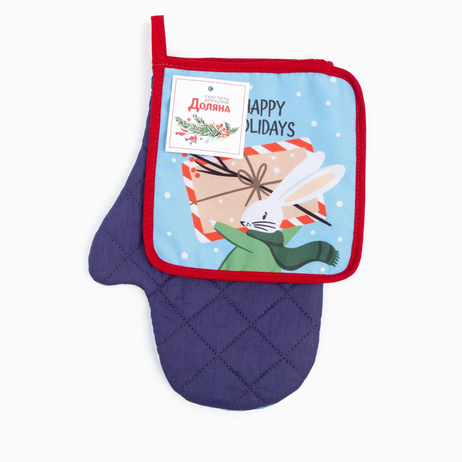 Набор кухонный «Happy Holiday» варежка-прихватка 20х28 см, прихватка 17х17 см, 35% х/л, 65% п/э 7624283