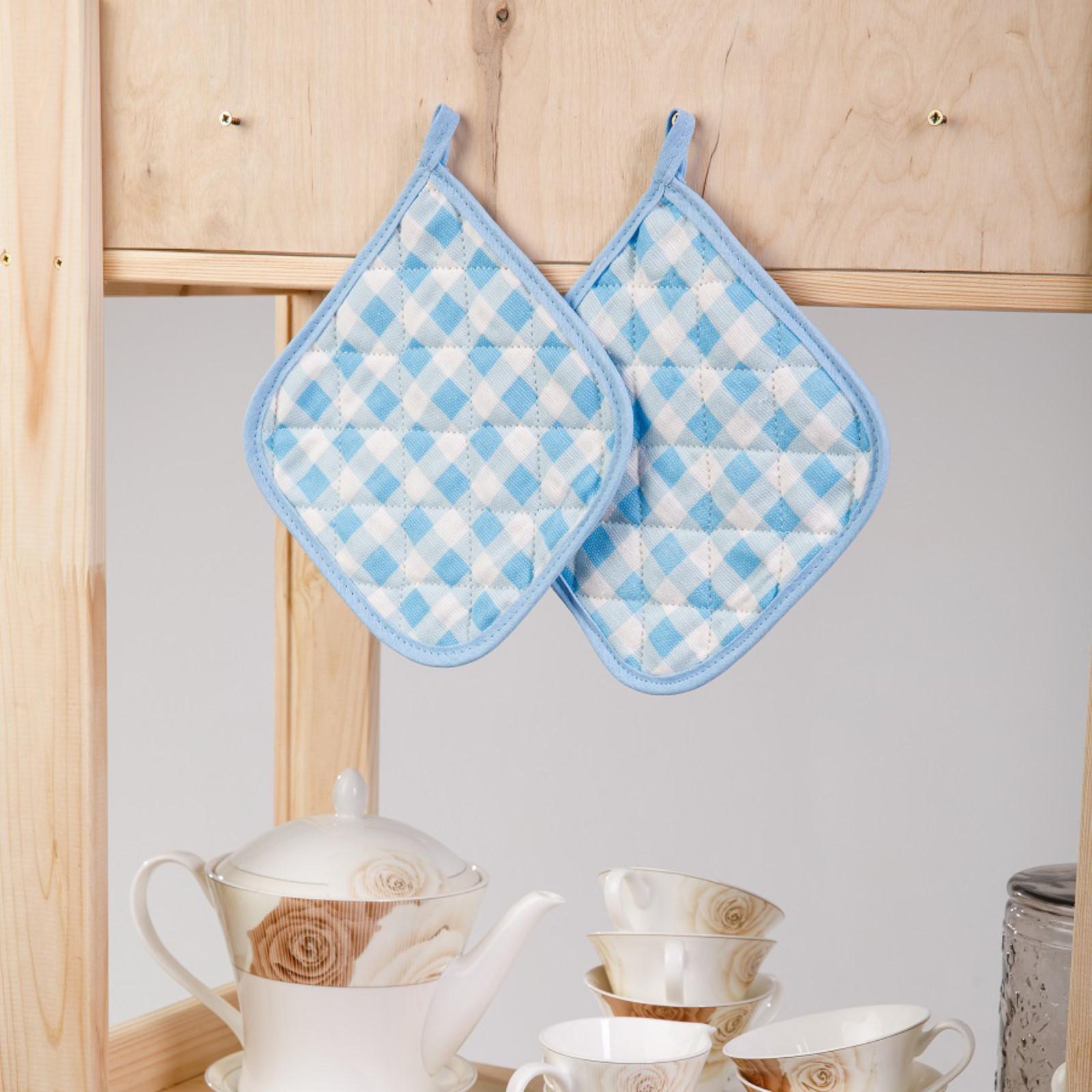 Прихватка «Клетка» 18х18 см, цвет голубой, рогожка