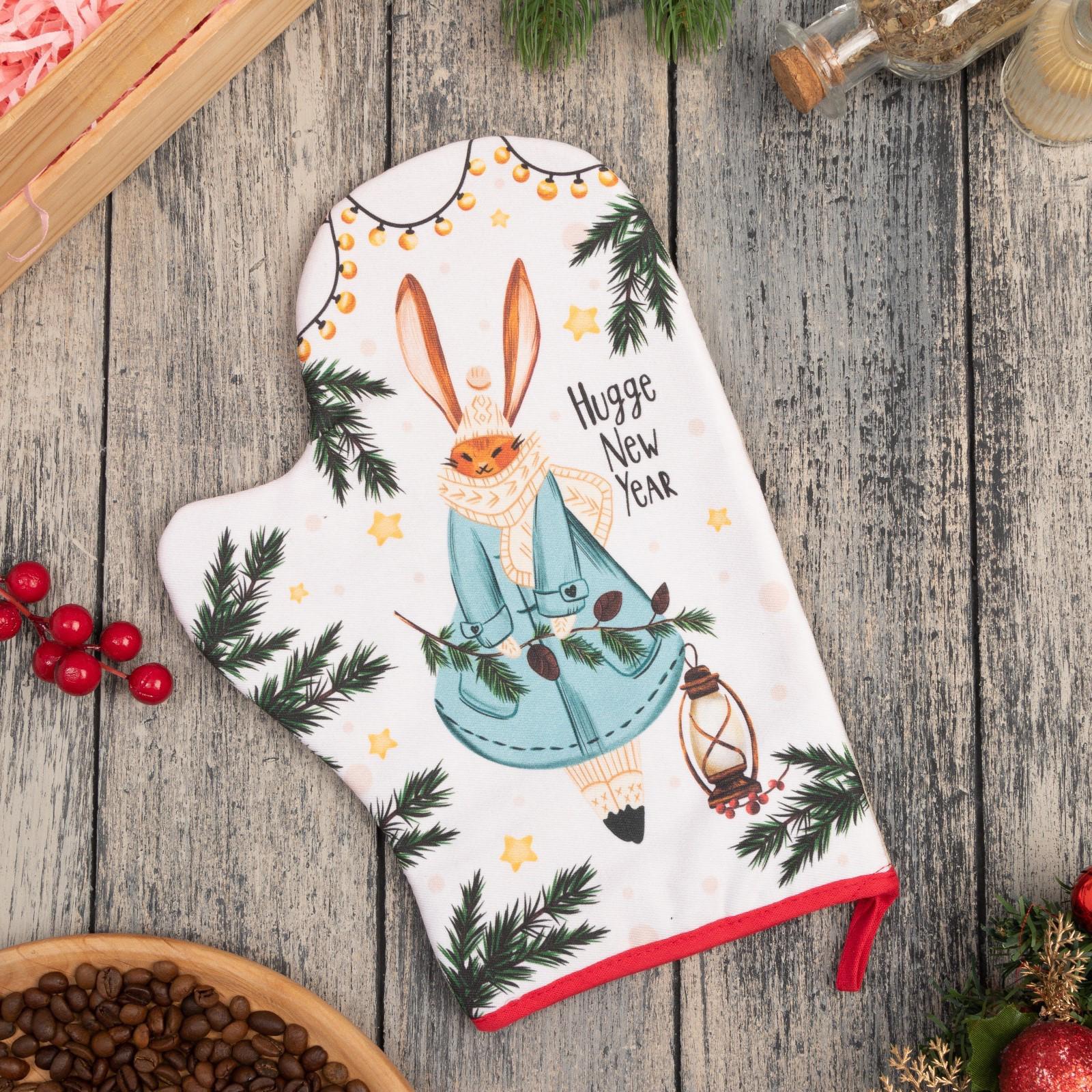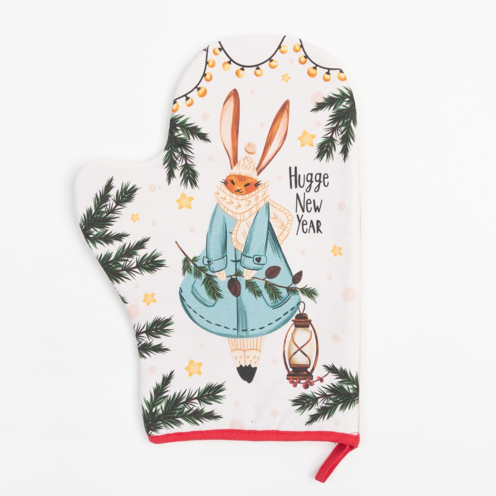 Варежка-прихватка "Hugge New Year" 20х28 см, саржа, 100% х/л, ватин 250 г/м2