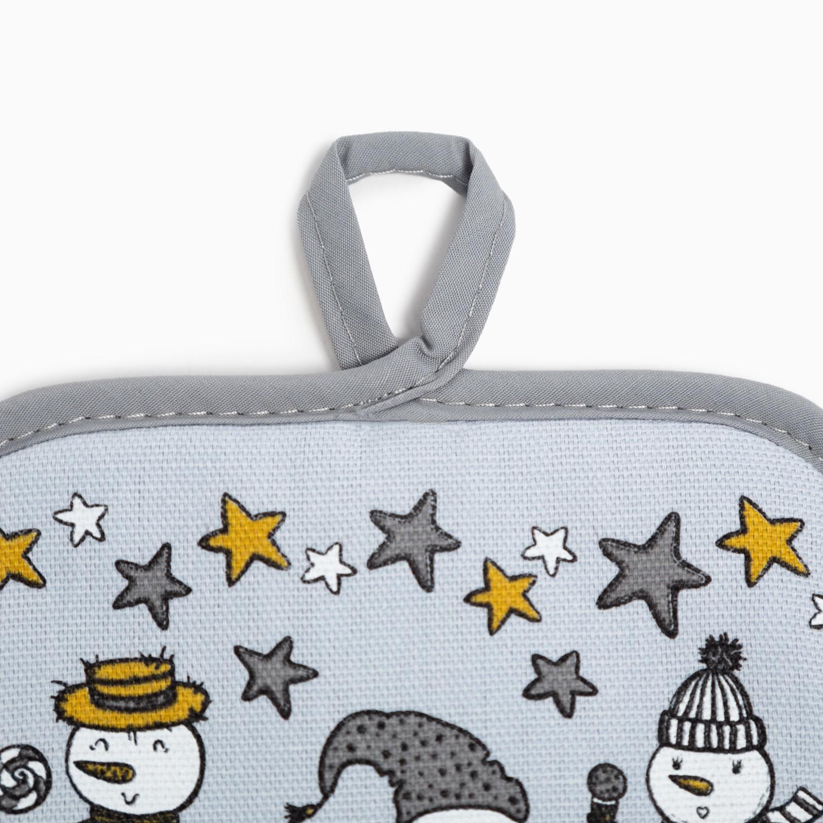 Прихватка Снеговики и елки 14х22 см, серо-голубой, хлопок 100%, 200г/м2
