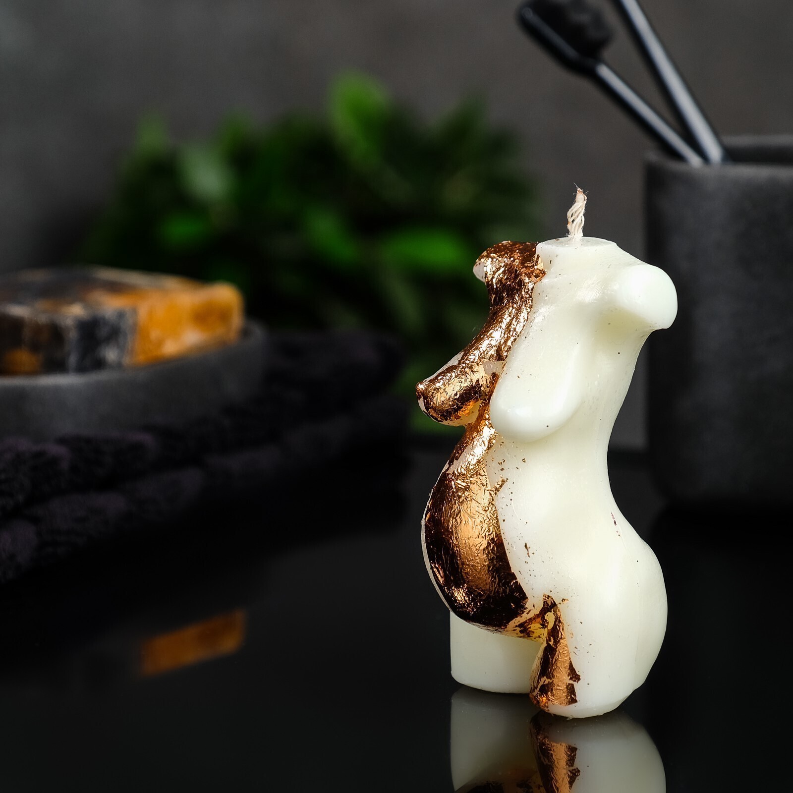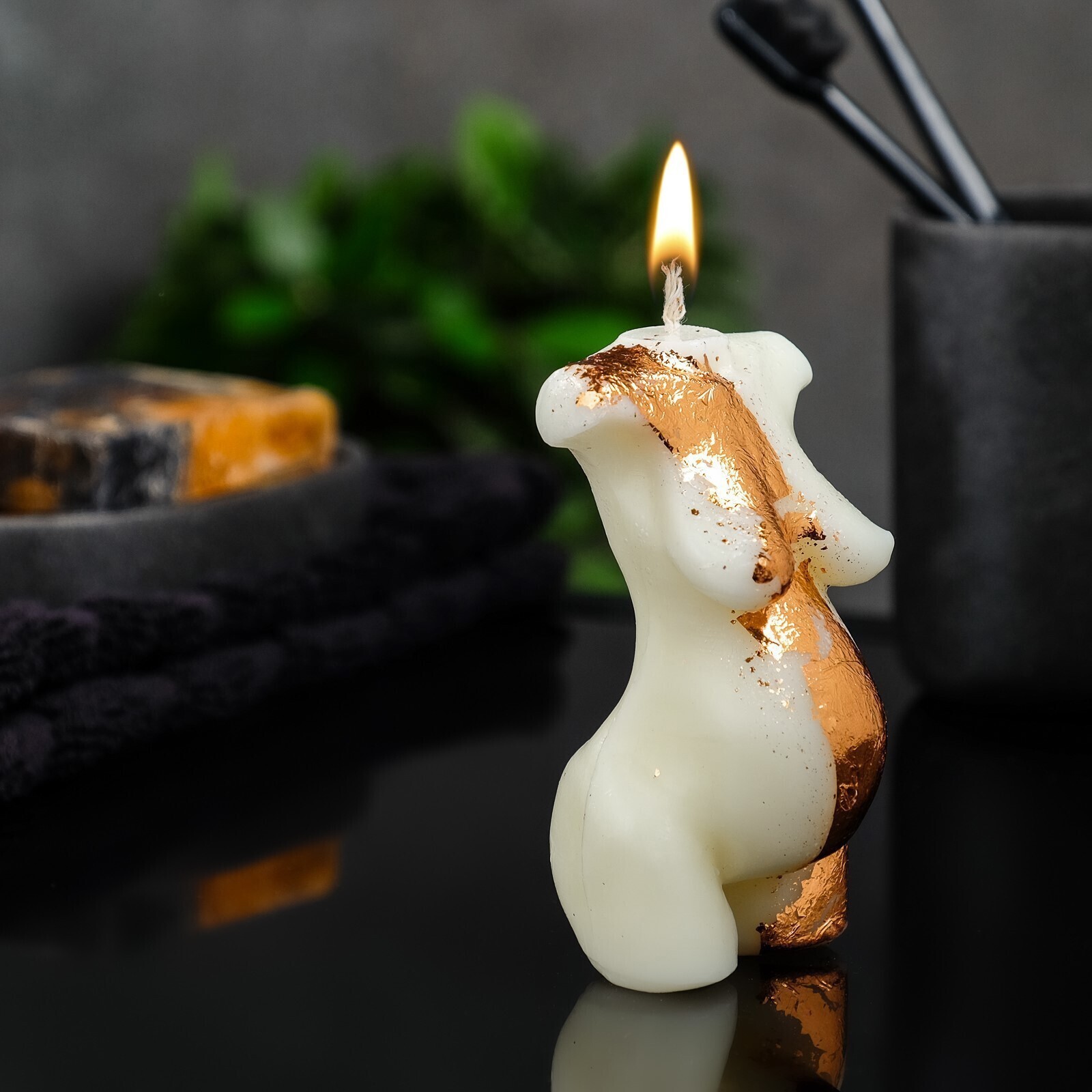 Фигурная свеча "Умиротворение" молочная с поталью, 9см