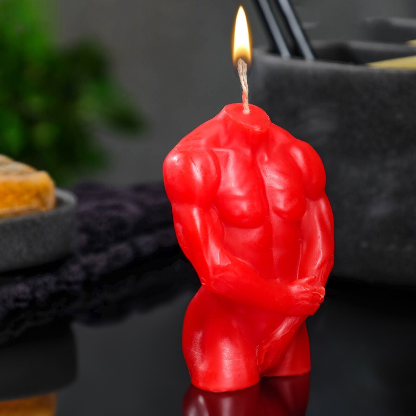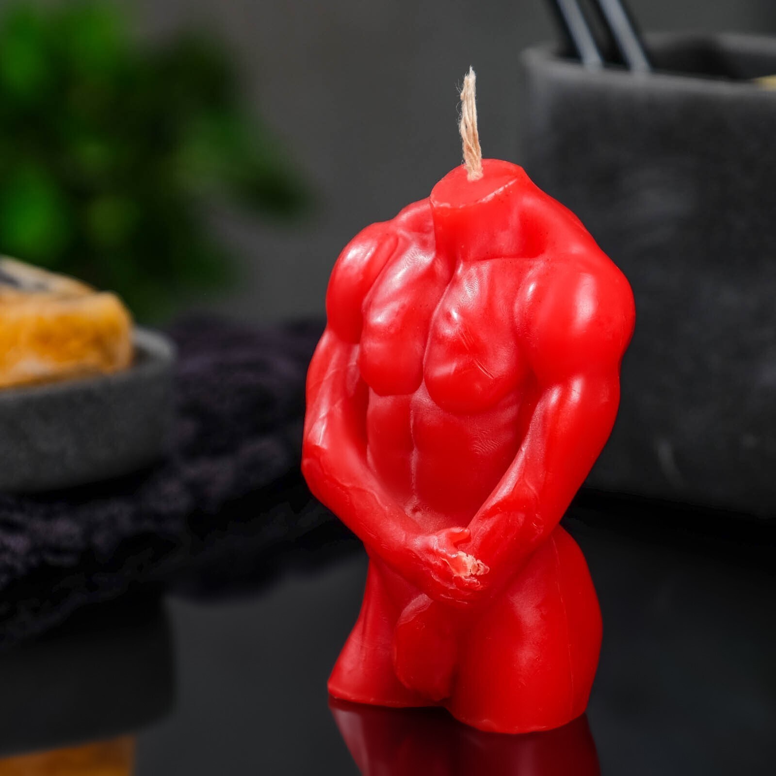 Фигурная свеча "Мужской торс №2" красная, 9см