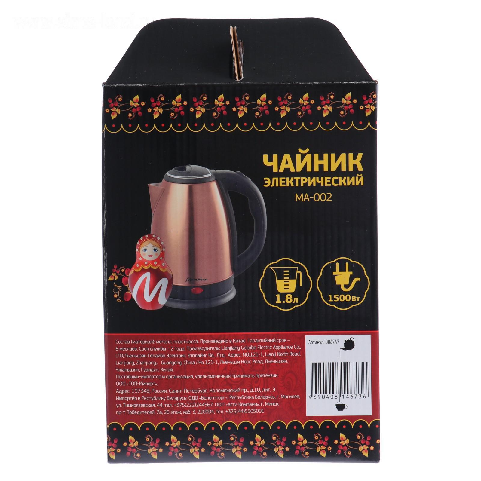 Чайник электрический "Матрёна" MA-002, металл, 1.8 л, 1500 Вт, цвет "медь"