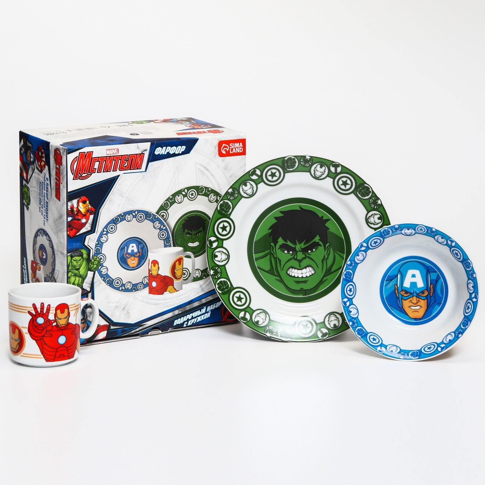 Набор посуды «Марвел», 3 предмета: тарелка Ø 16,5 см, миска Ø 14 см, кружка 200 мл, Мстители