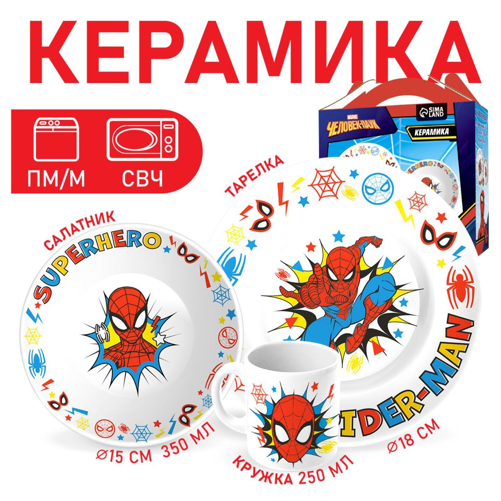 Набор посуды "Человек-паук", три предмета: кружка 250 мл , тарелка 18 см, салатник 350 мл 7063584