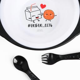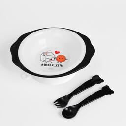 Набор детской посуды «Люблю есть», тарелка на присоске 250мл, вилка, ложка 7310966