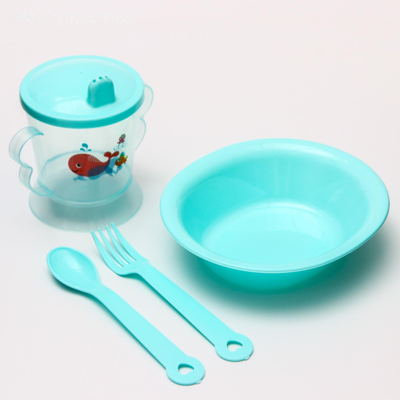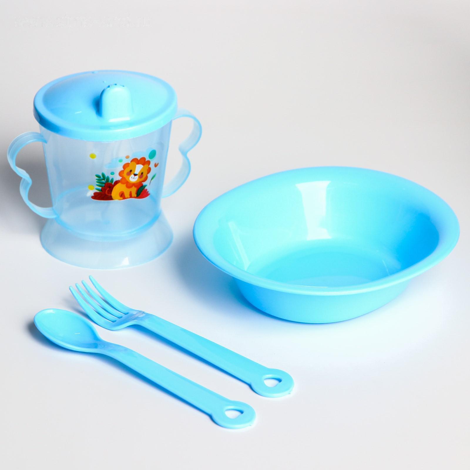 Набор для кормления: миска, поильник, вилка, ложка, цвет СЮРПРИЗ 4724447