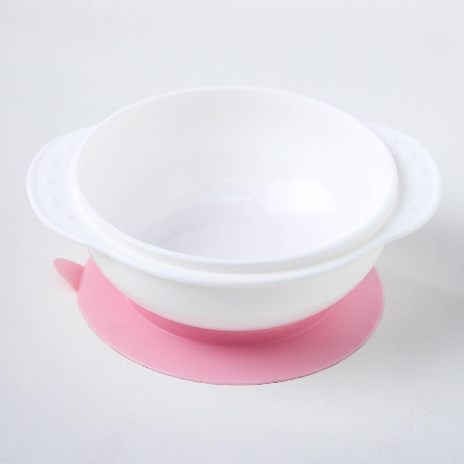 Набор для кормления, 3 предмета: миска на присоске 400 мл, крышка, ложка, цвет присоски розовый, цвет крышки СЮРПРИЗ