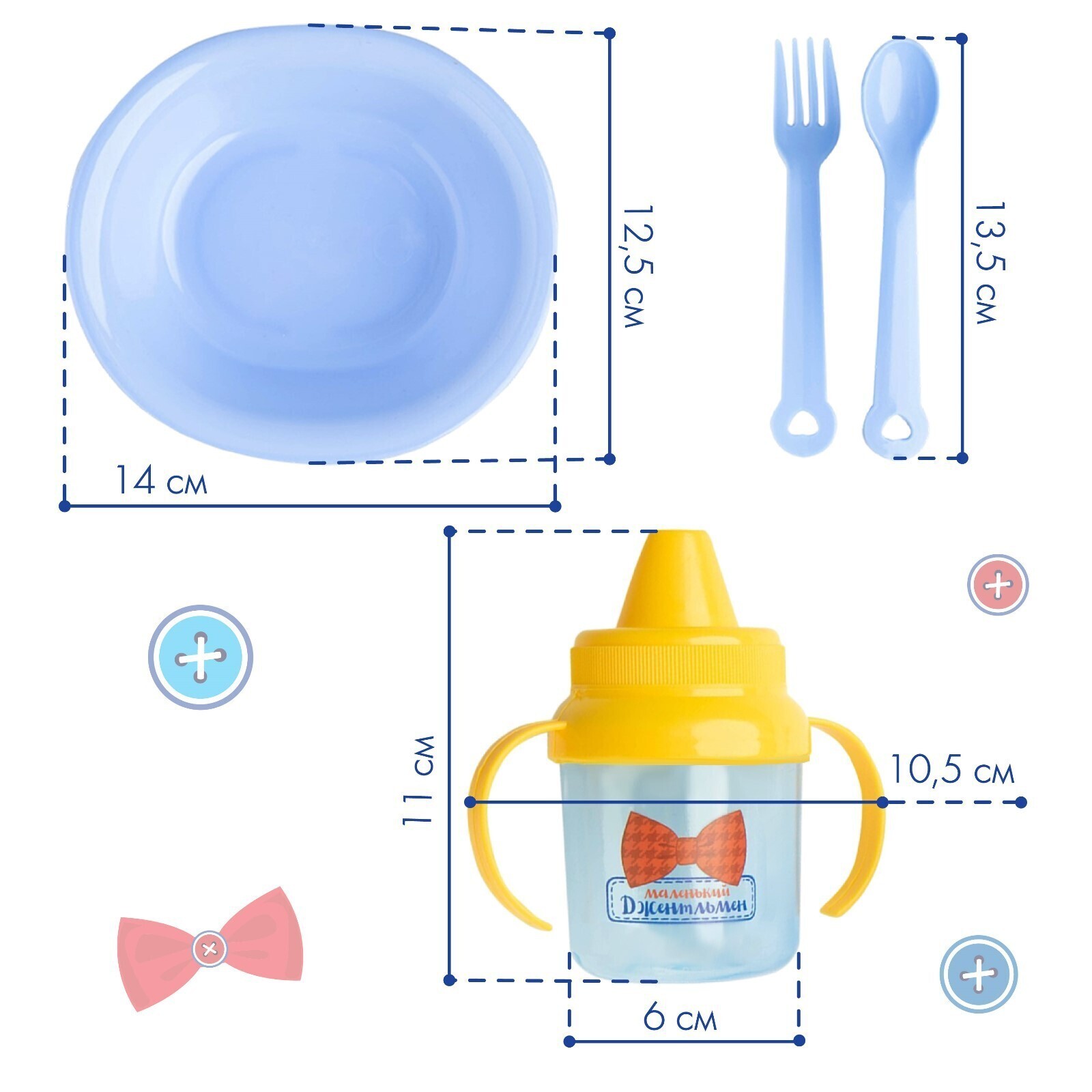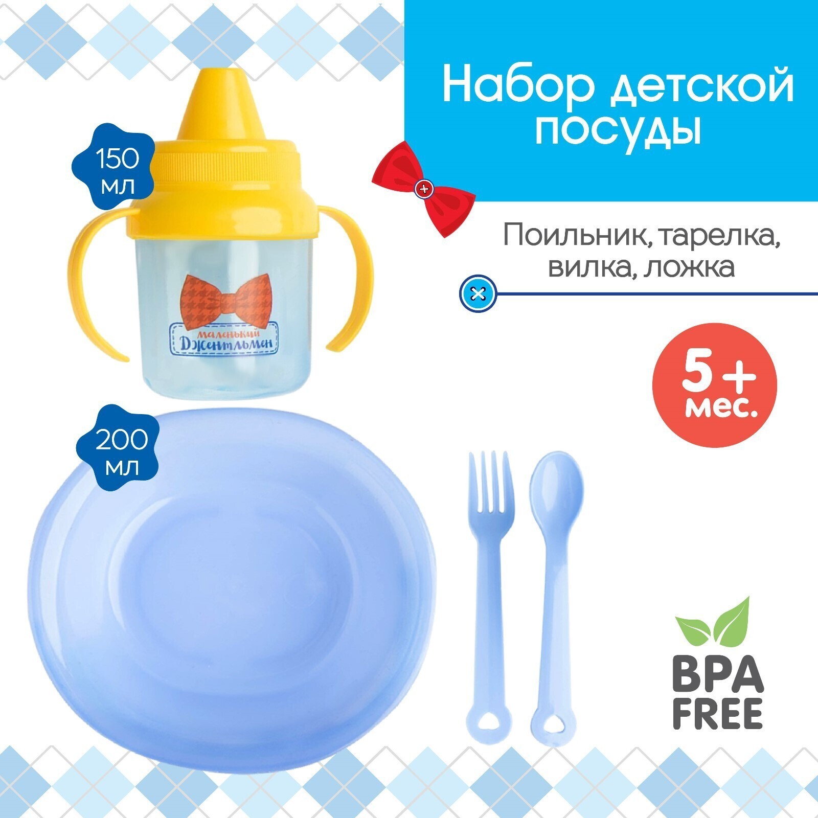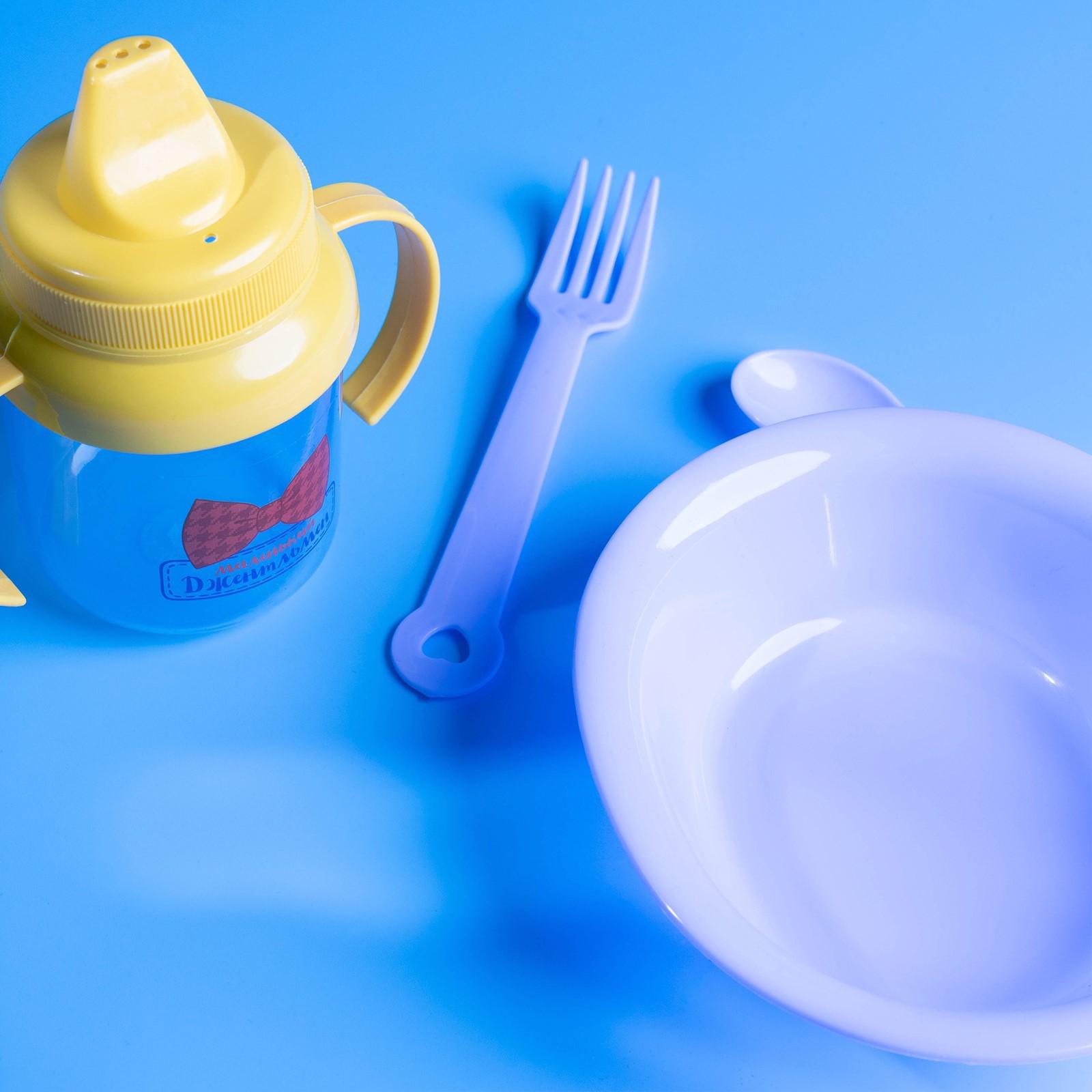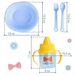 Набор детской посуды «Маленький джентльмен», 4 предмета: тарелка, поильник, ложка, вилка, от 5 мес.