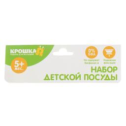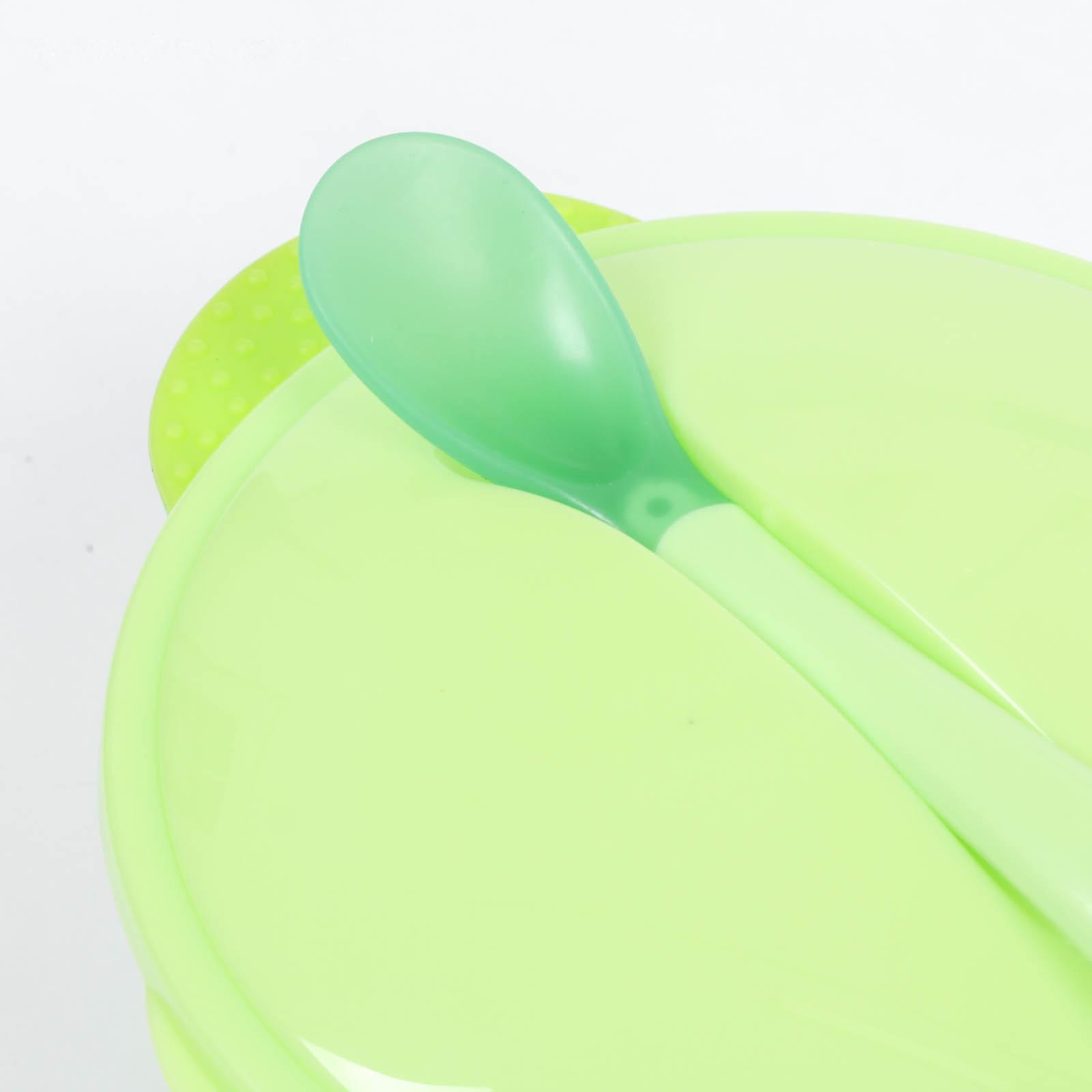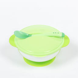 Набор для кормления, 3 предмета: миска 350 мл на присоске, крышка, ложка, цвет зелёный