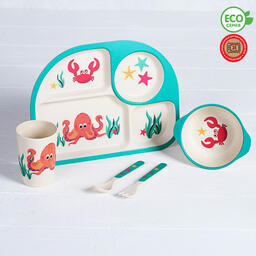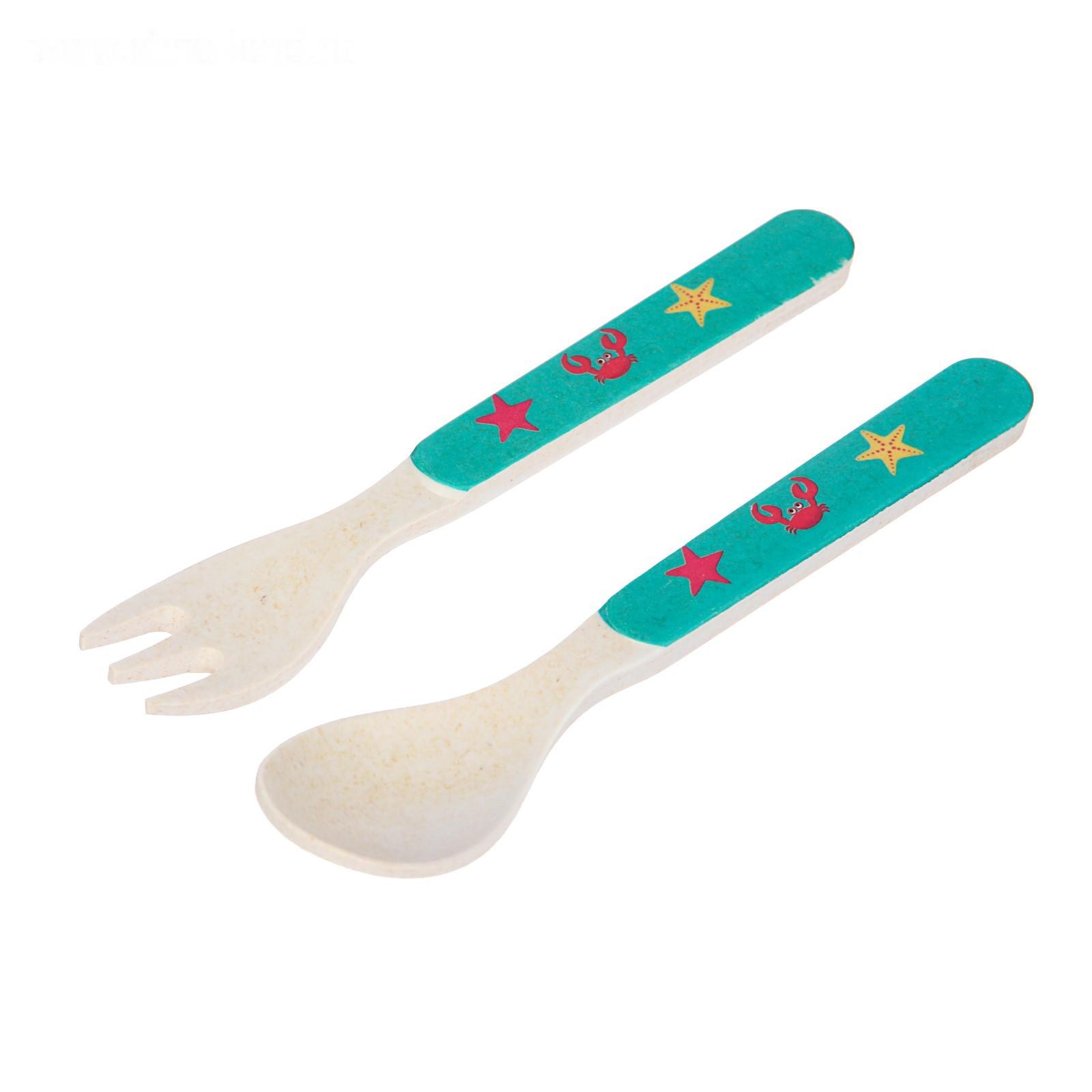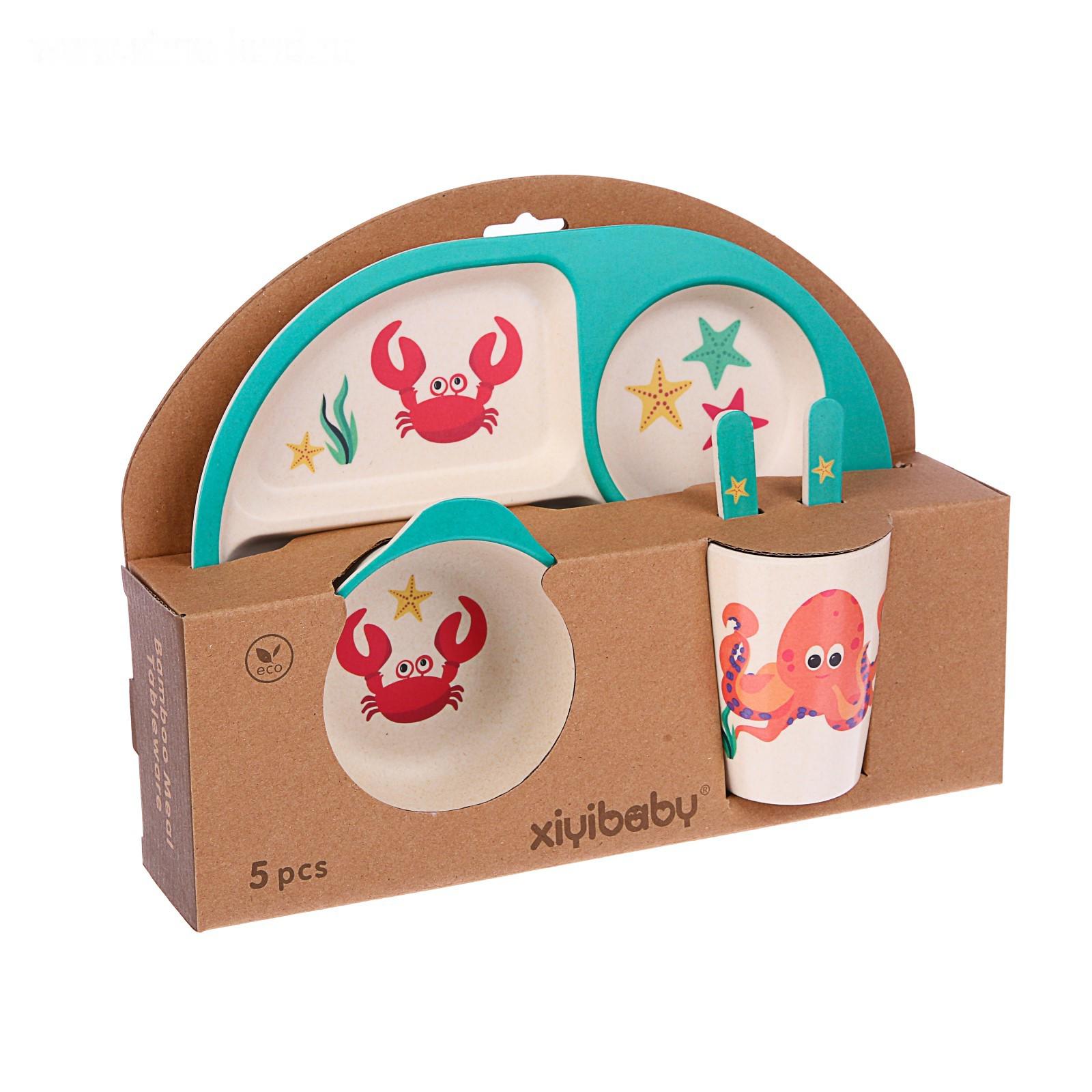 Набор детской посуды из бамбука «Морские жители», 5 предметов: тарелка, миска, стакан, столовые приборы 3860783