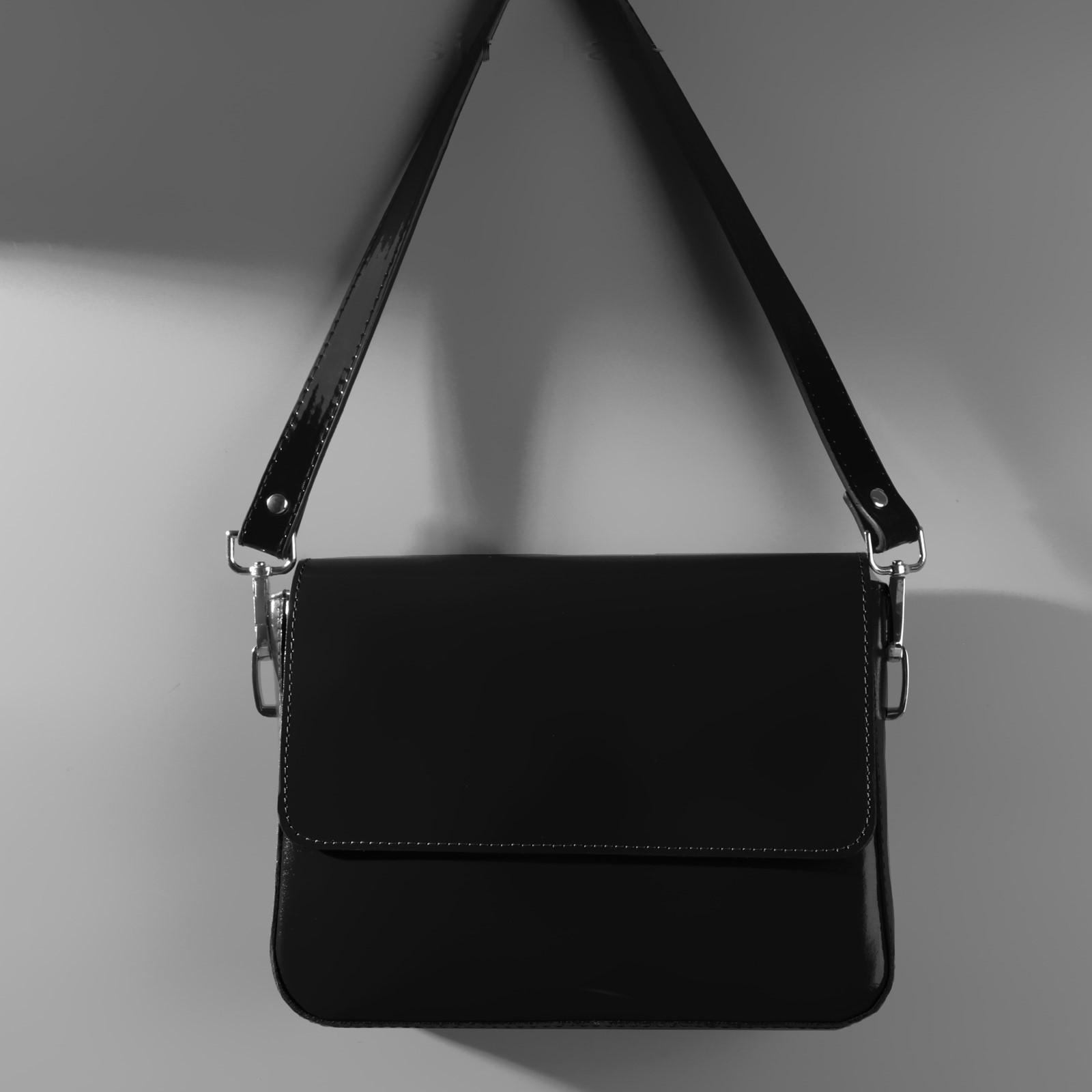 Ручка для сумки лакированная, с карабинами, 60 ± 1 см, цвет чёрный 7344000