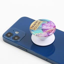Попоскет крепится к телефону или чехлу на клейкую основу.