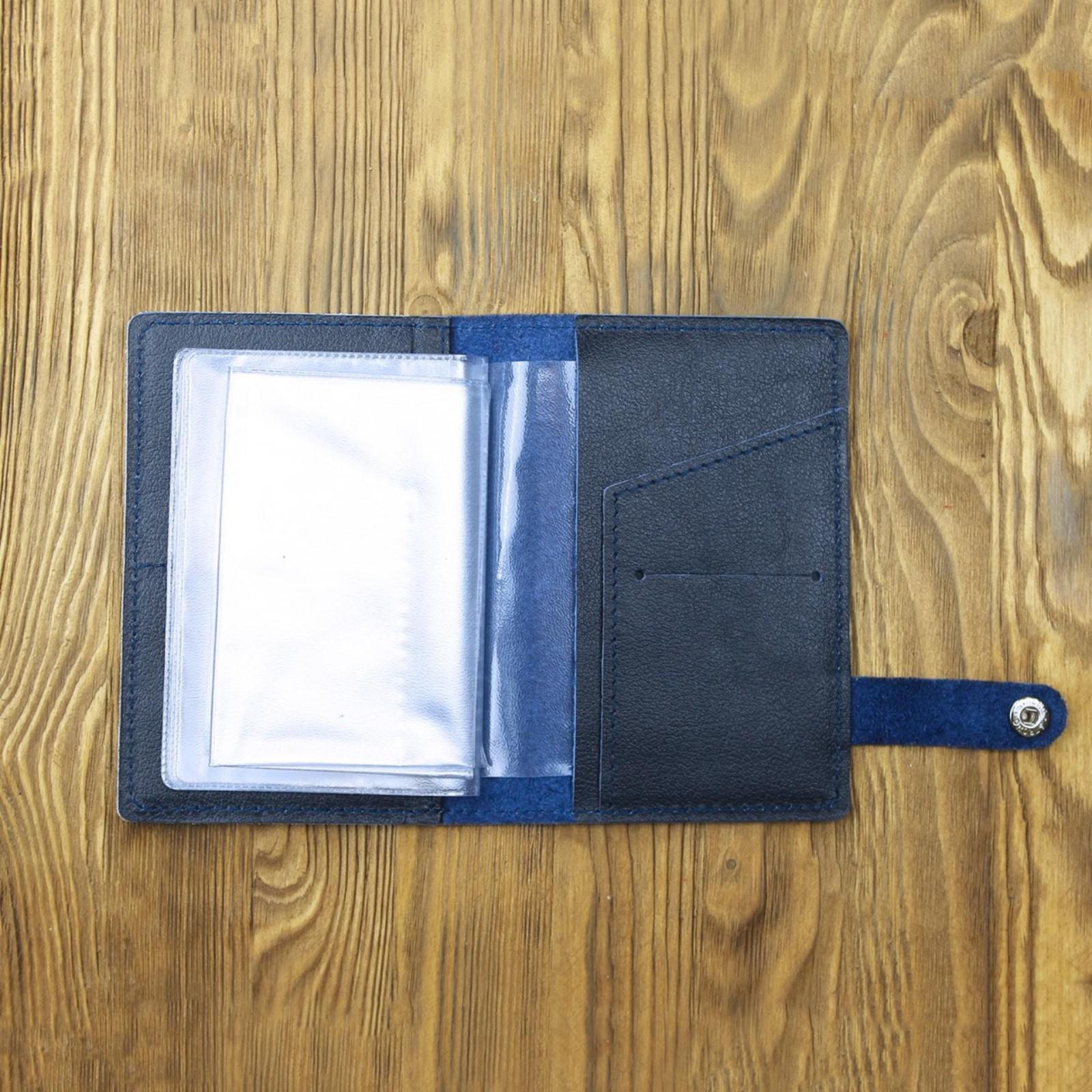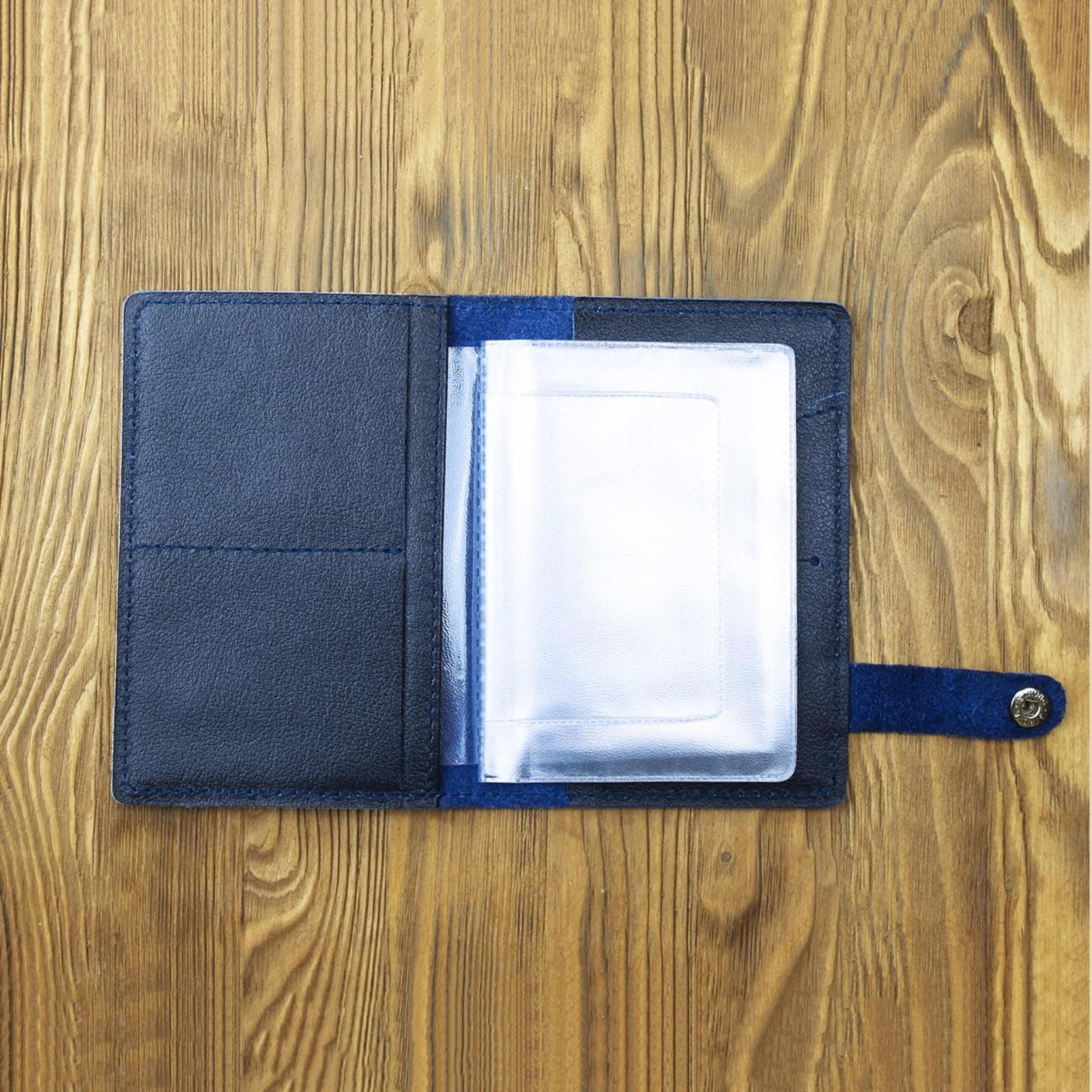Обложка на автодокументы на кнопке комбинированная белая вставка "РФ с флагом России", синяя 62584 6258405