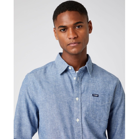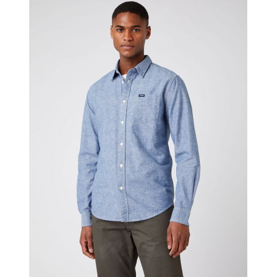 Рубашка WRANGLER One Pocket Shirt W5F1TVX50 мужская, цвет голубой, размер L W5F1TVX50-L