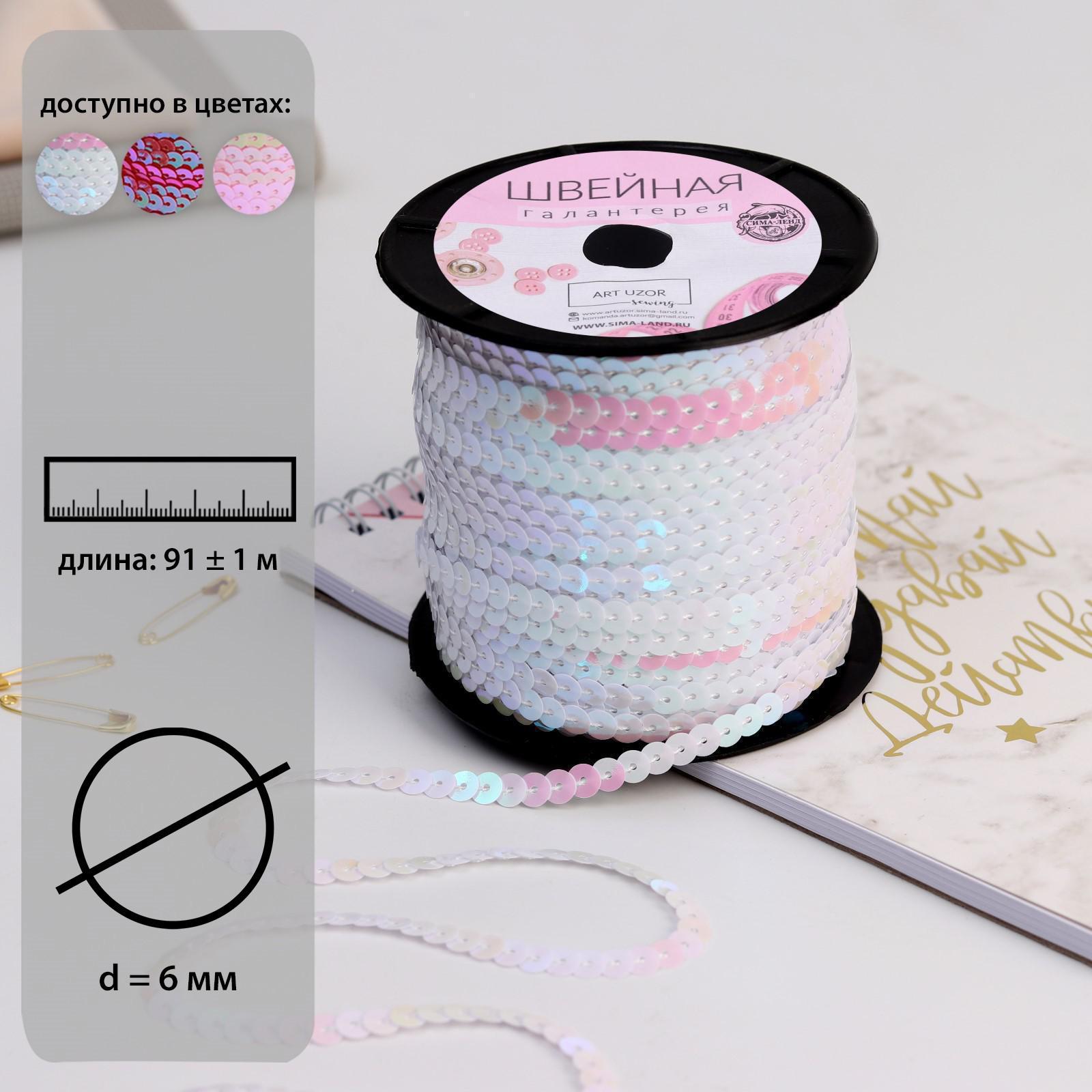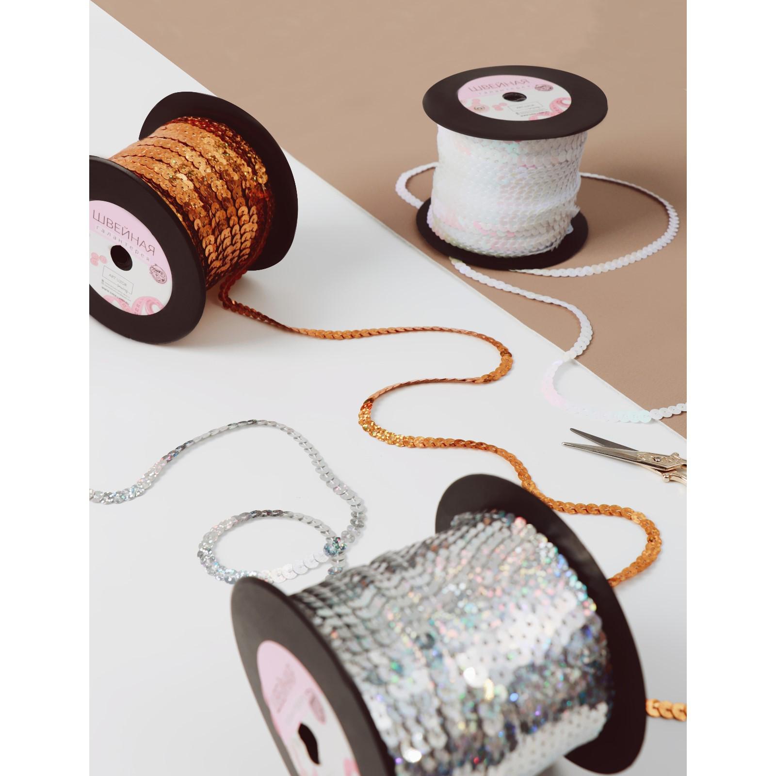 Пайетки на нити, перламутр, 6 мм, 91 ± 1 м, цвет белый №51
