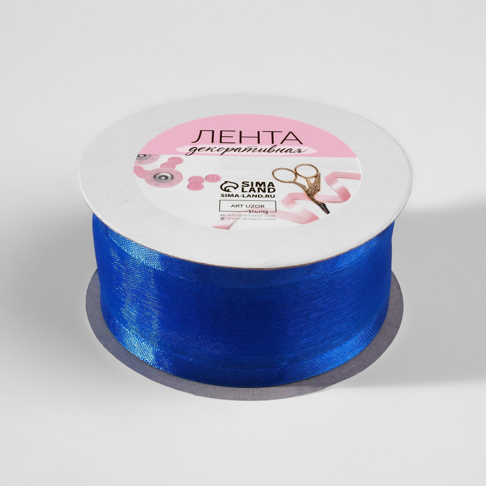 Лента декоративная, капрон/атлас, 40 мм, 18 ± 1 м, цвет синий