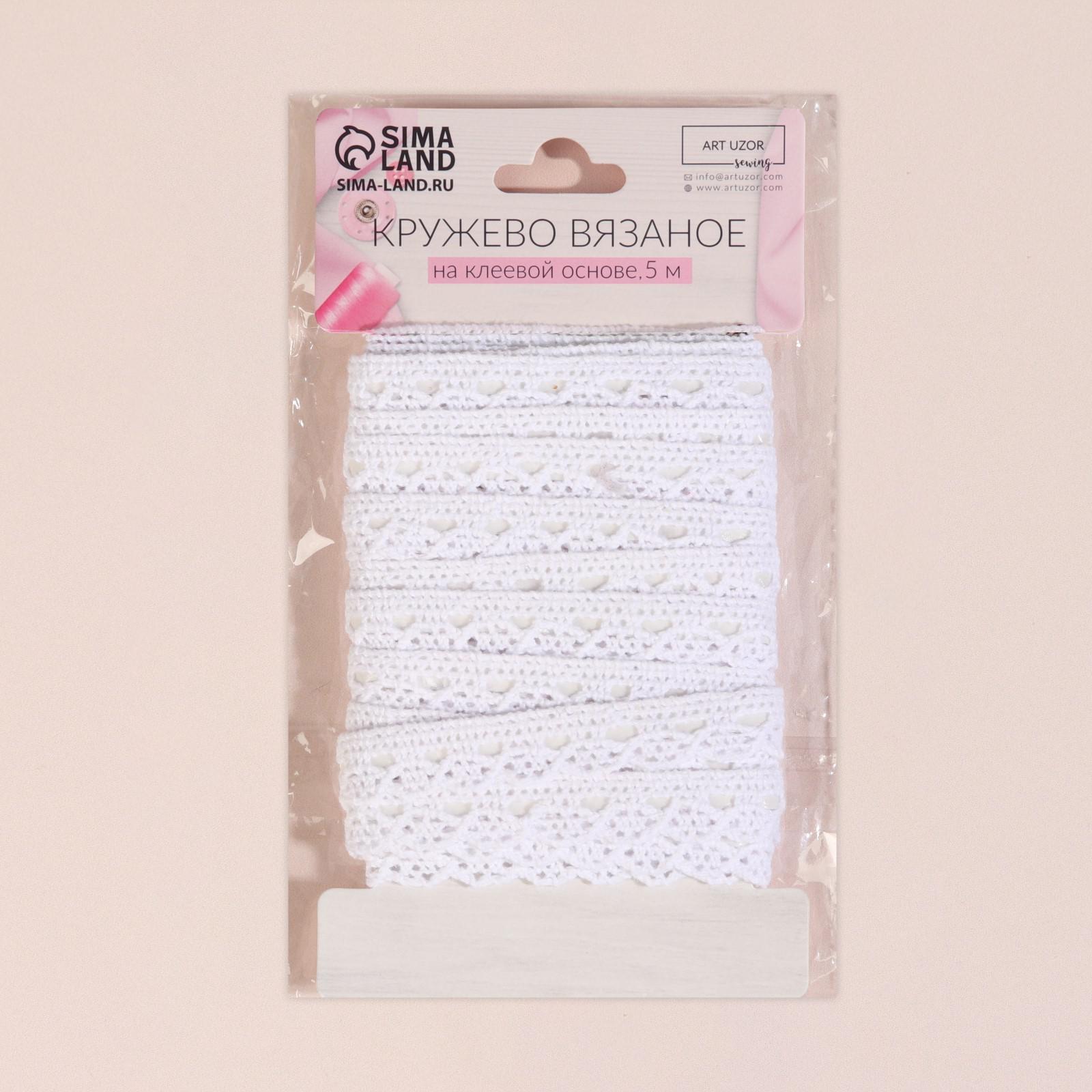 Кружево вязаное, клеевое, 12 мм × 5 ± 0,5 м, цвет белый