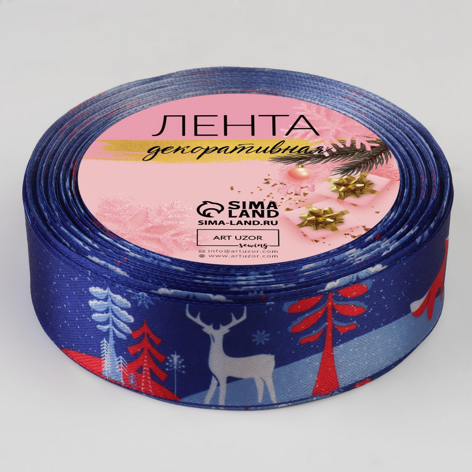 Лента атласная «Зимний лес», 25 мм, 23 ± 1 м, цвет синий 7706159