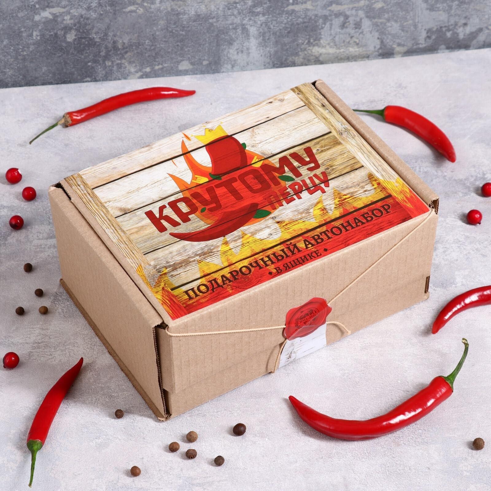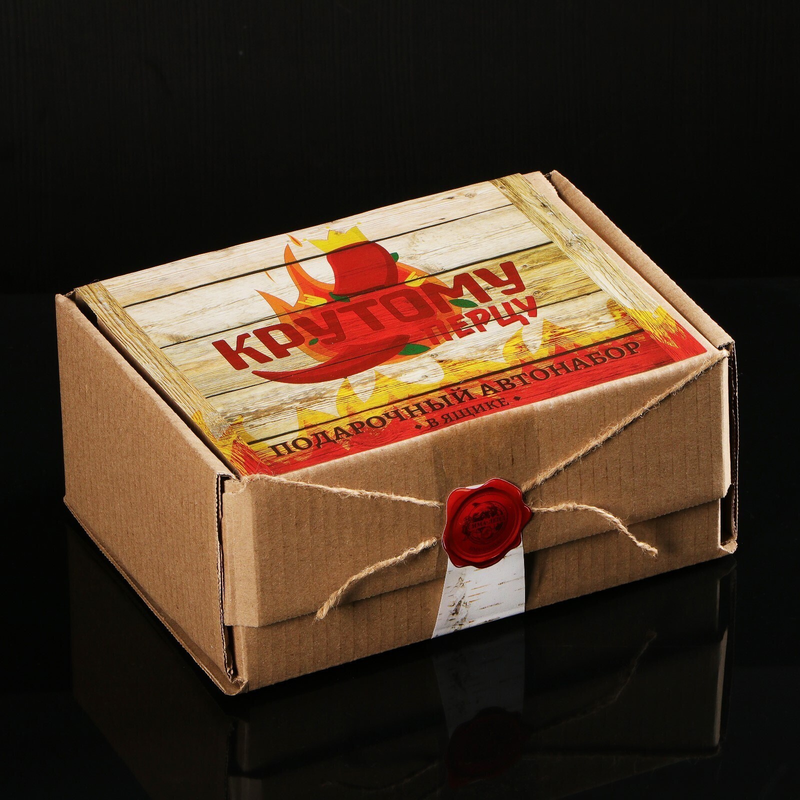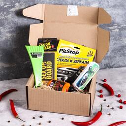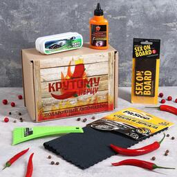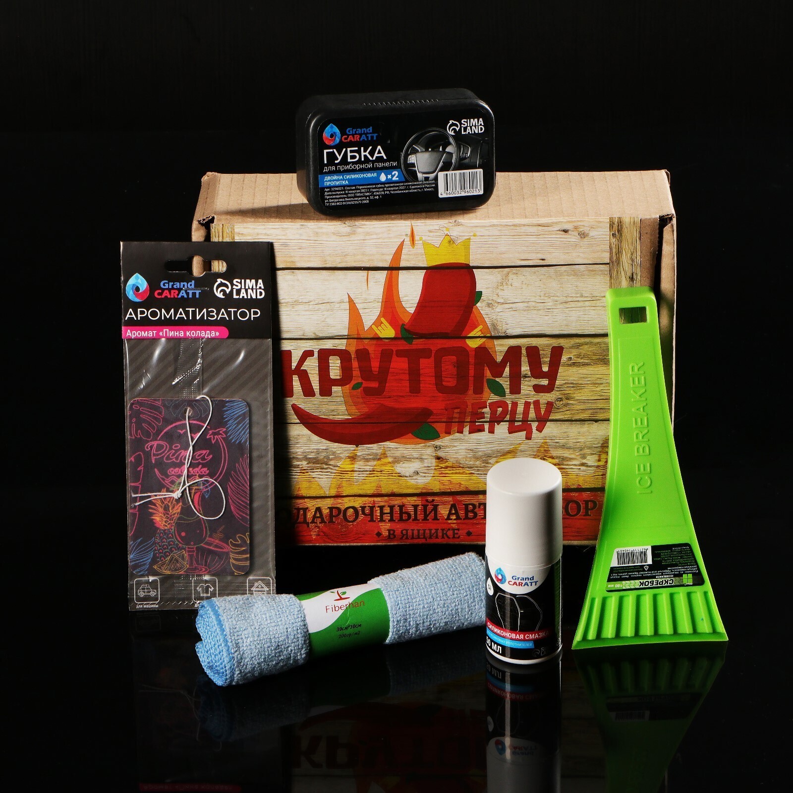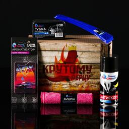 Подарочный бокс "Крутому перцу" автонабор для ухода: Ароматизатор, скребок, салфетка из микрофибры, губка для полировки, смазка универсальная 60 мл 6882628