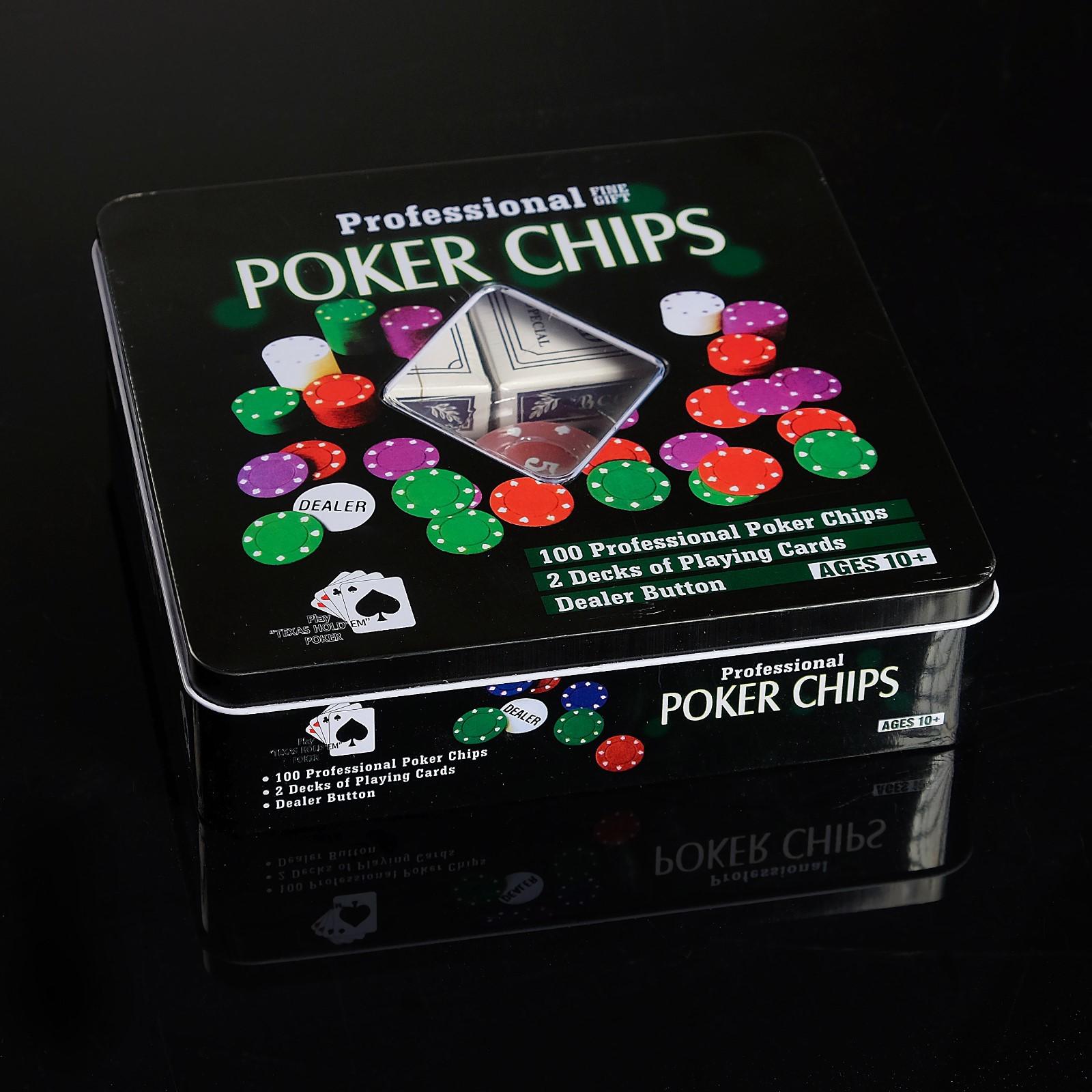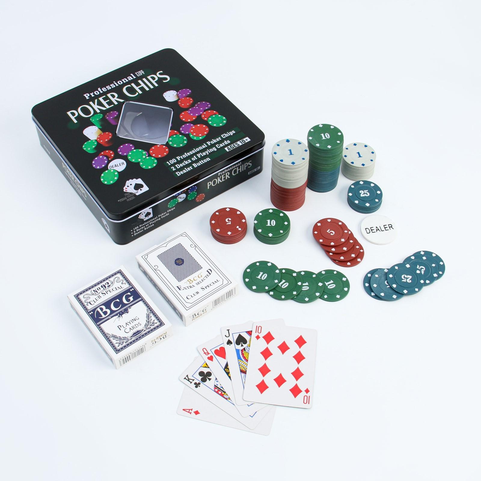 Покер, набор для игры (карты 2 колоды, фишки 100 шт.), с номиналом, 20 х 20 см