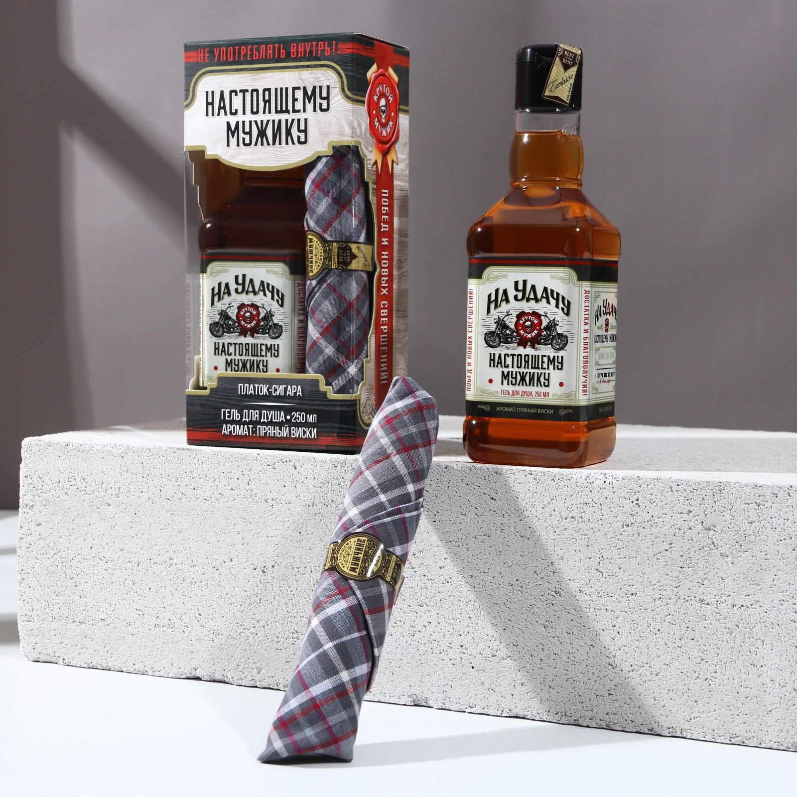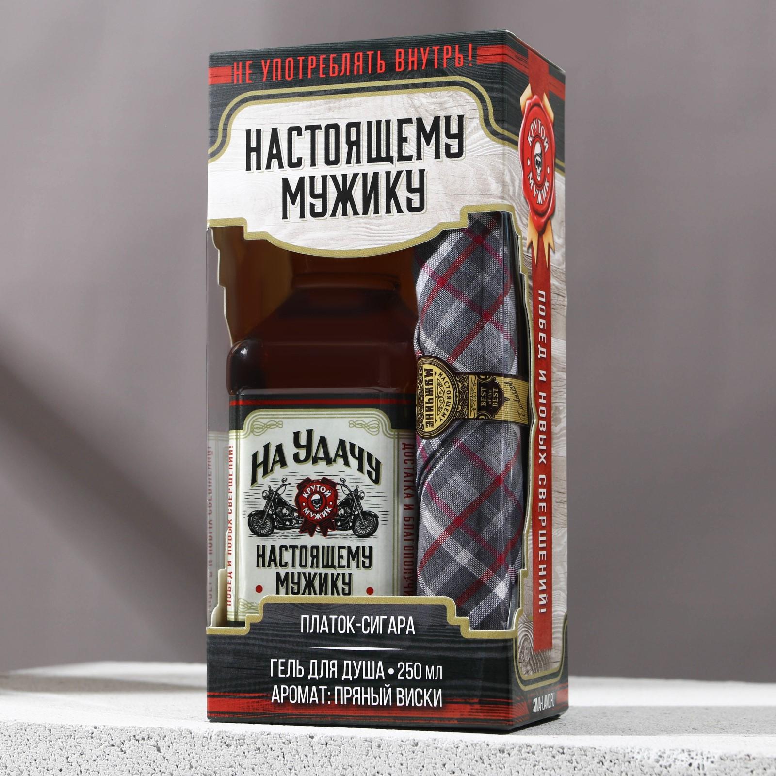 Набор «Крутому мужику»: гель для душа во флаконе виски 250 мл, аромат пряный виски, платок в форме сигары