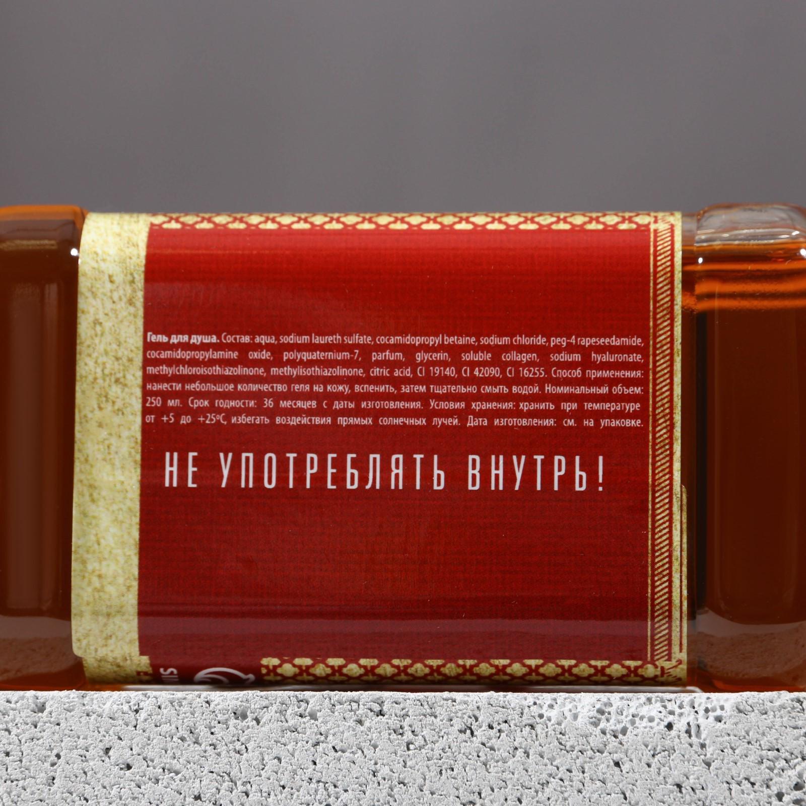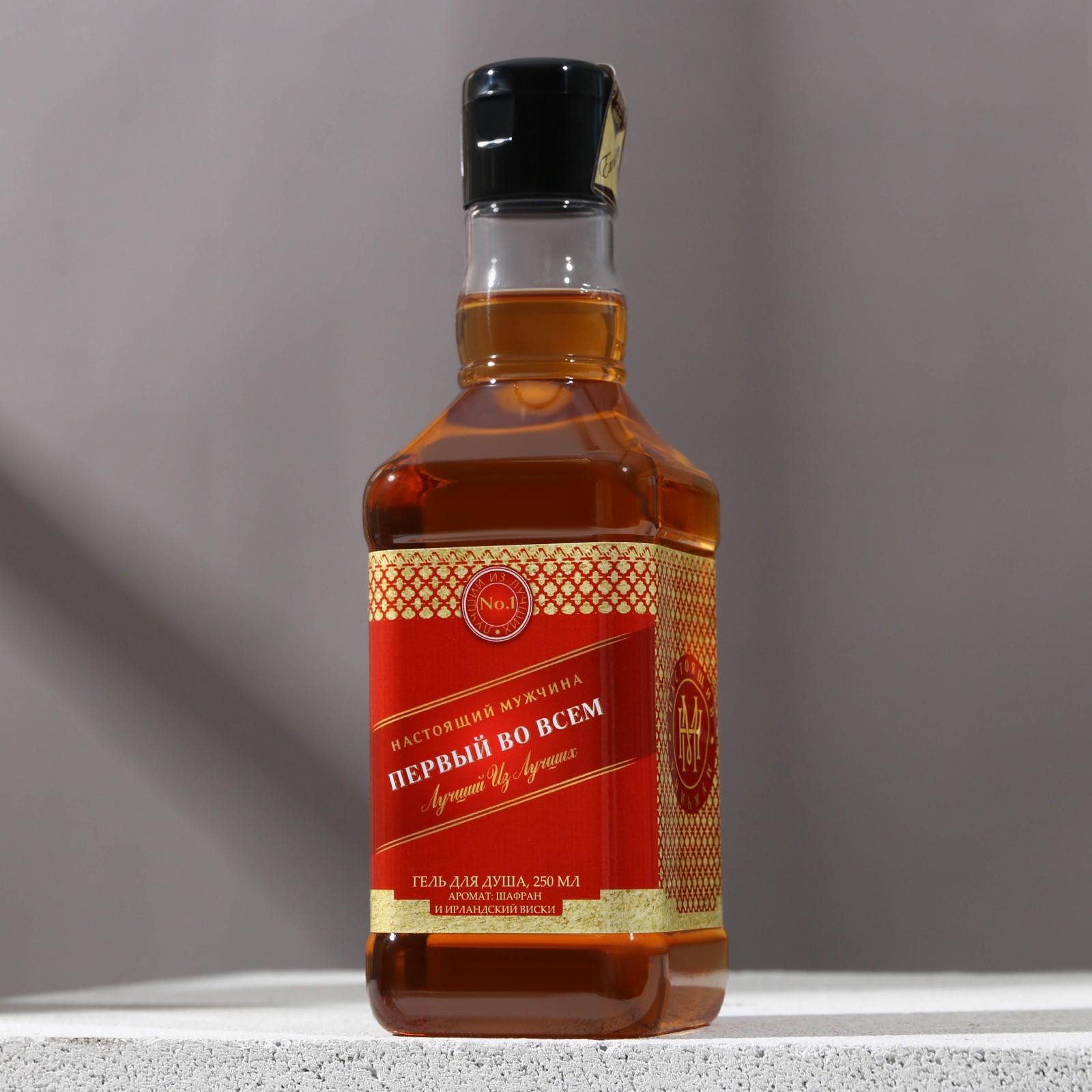 Набор "Первый во всём": гель для душа во флаконе виски 250 мл, аромат шафран и ирландский виски, успокаивающий гель для бритья 110 мл