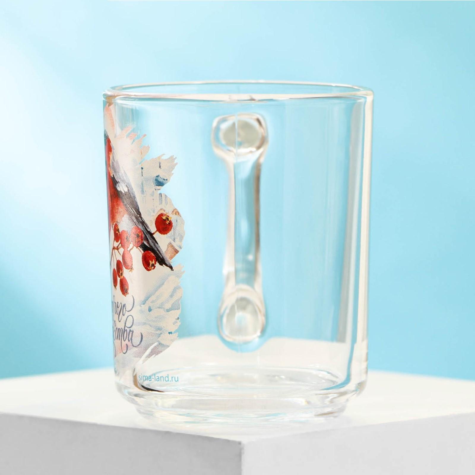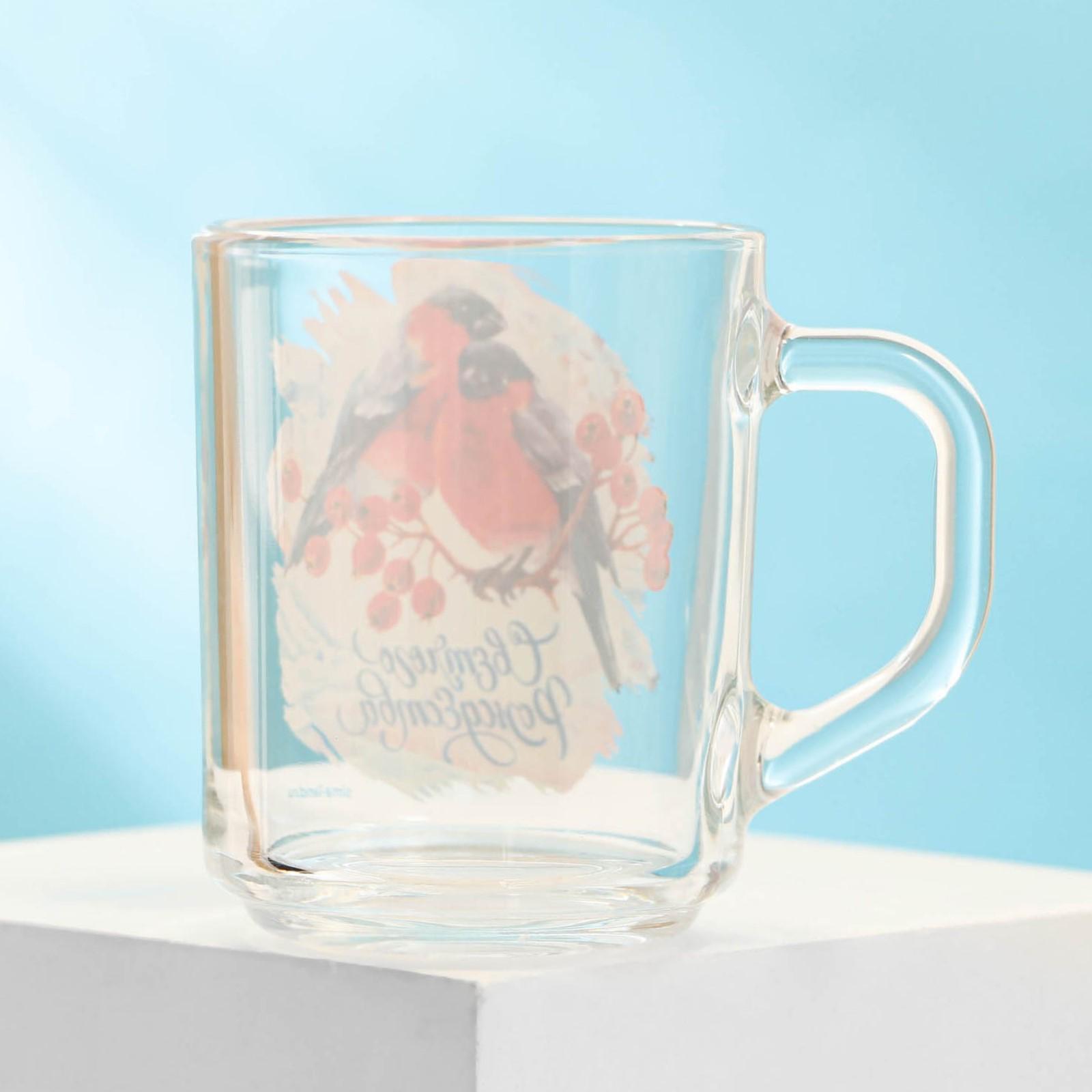 Кружка стеклянная «Снегири», 200 мл