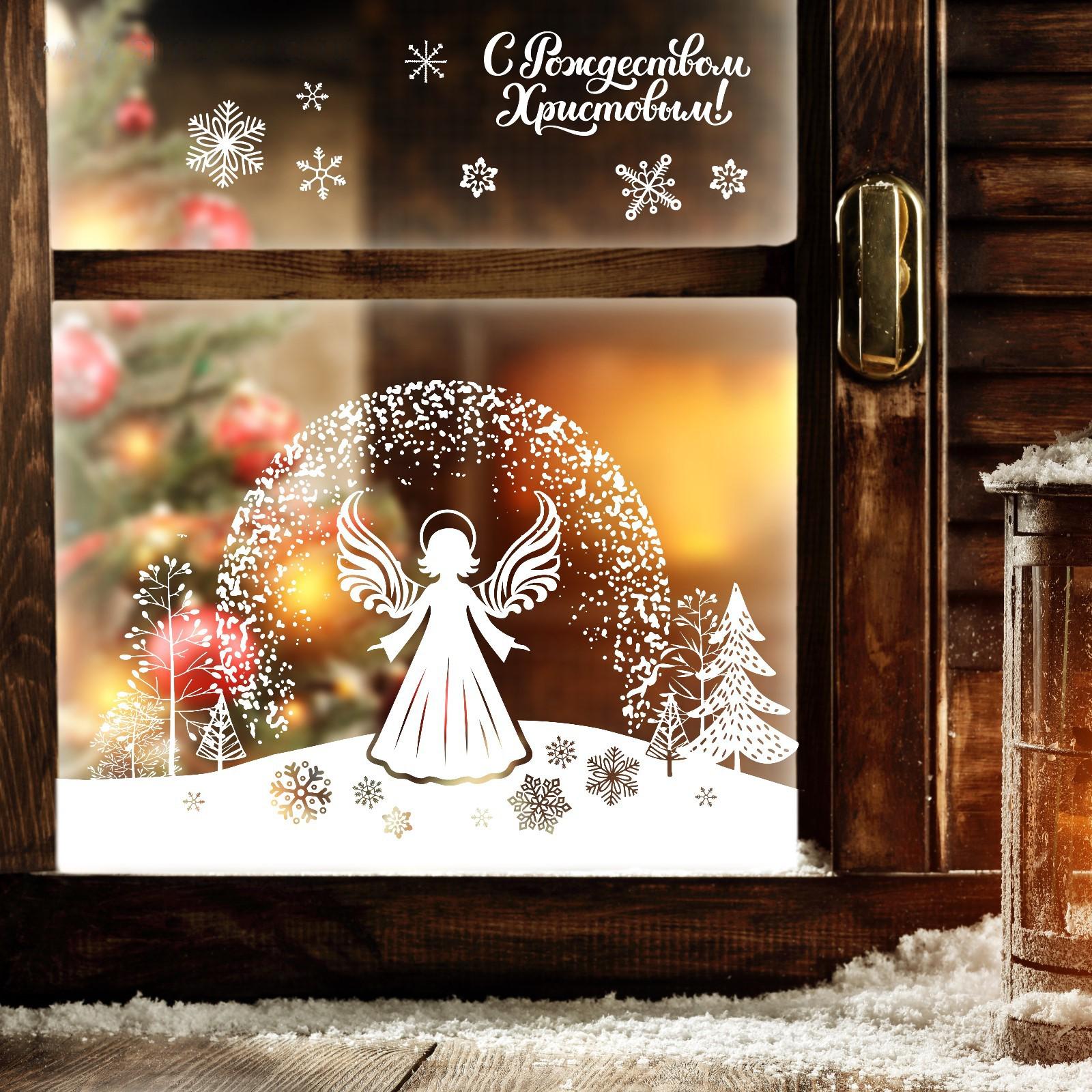 Наклейки витражные «Зимний ангел», 33 х 55 см. 4262525