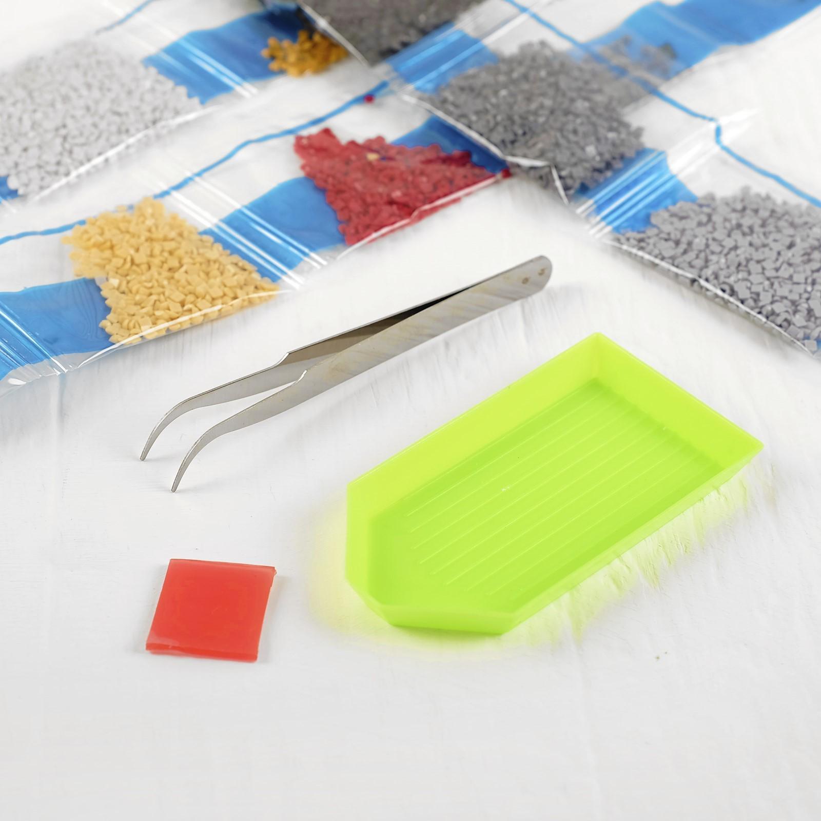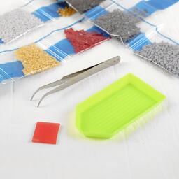 Тканевая основа имеет исключительное клеевое покрытие, которое надёжно удерживает кристаллики. С помощью пинцета вам нужно разложить их по нарисованной схеме с обозначением необходимых цветов, полностью заполнив полотно. Отдельно вас порадует то, что все цвета схемы расположены рядом с рабочей областью холста. А это значит, что схема всегда будет под рукой!
