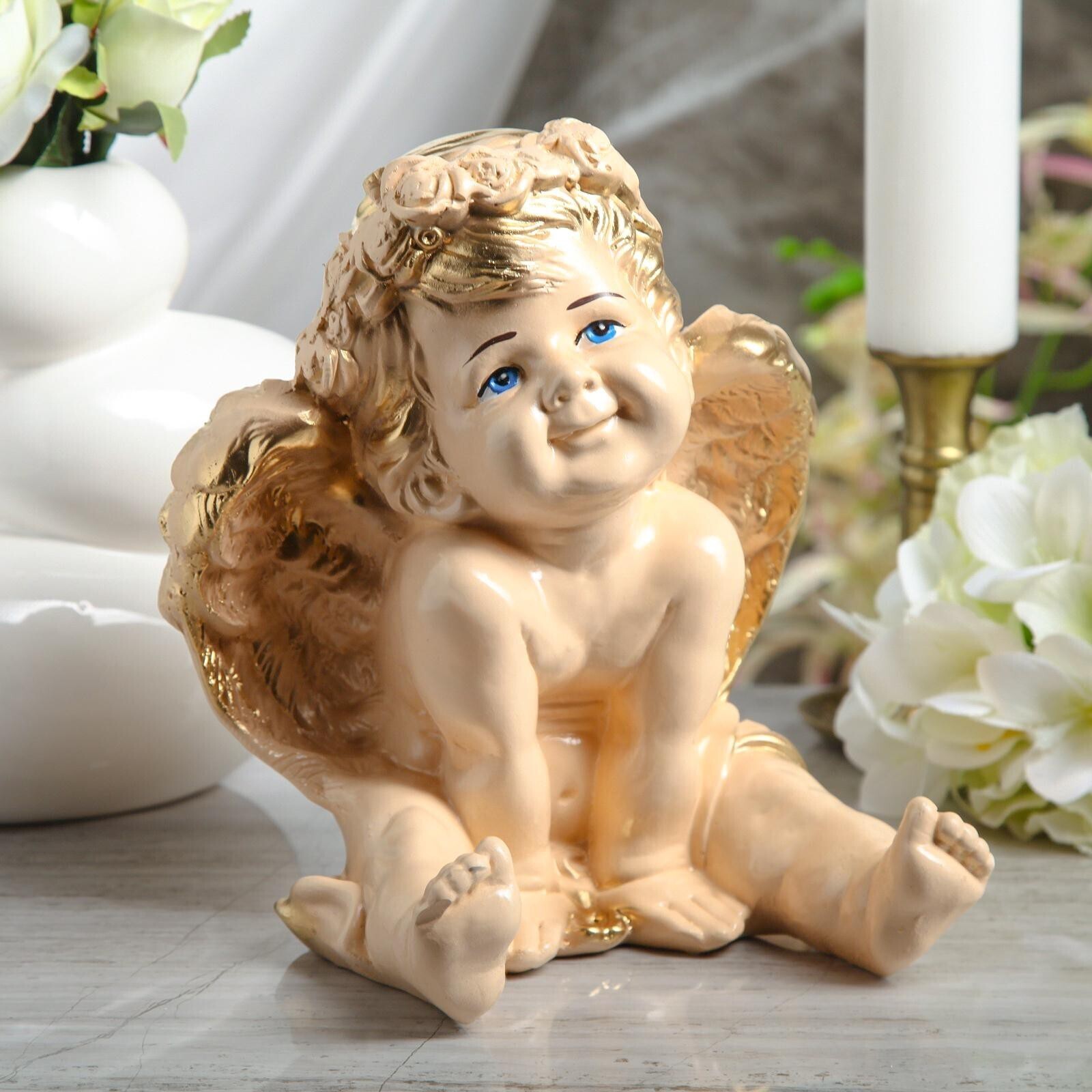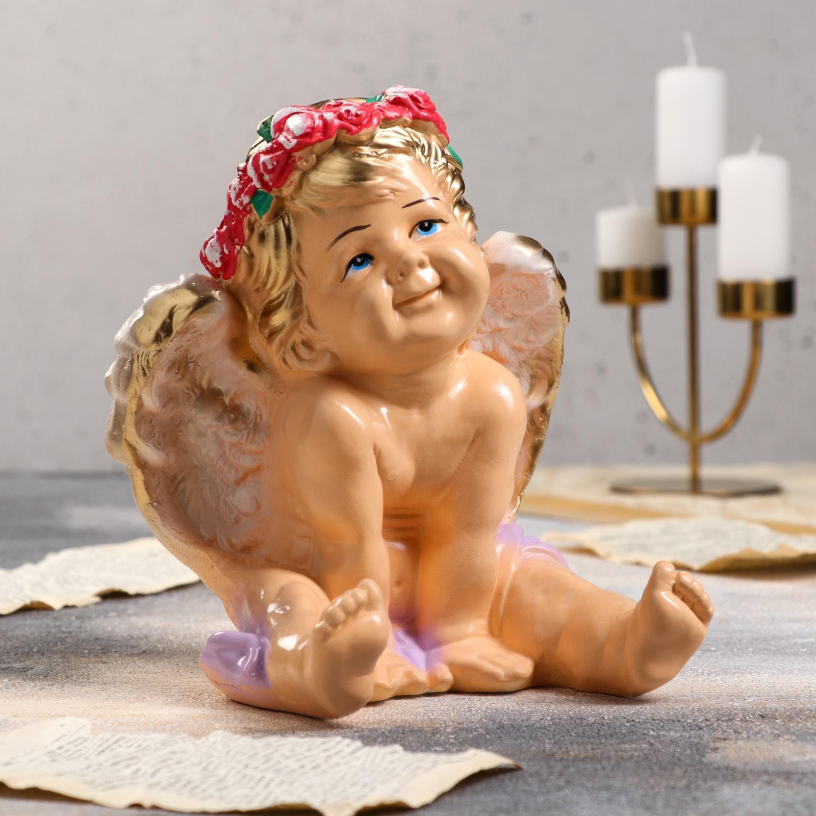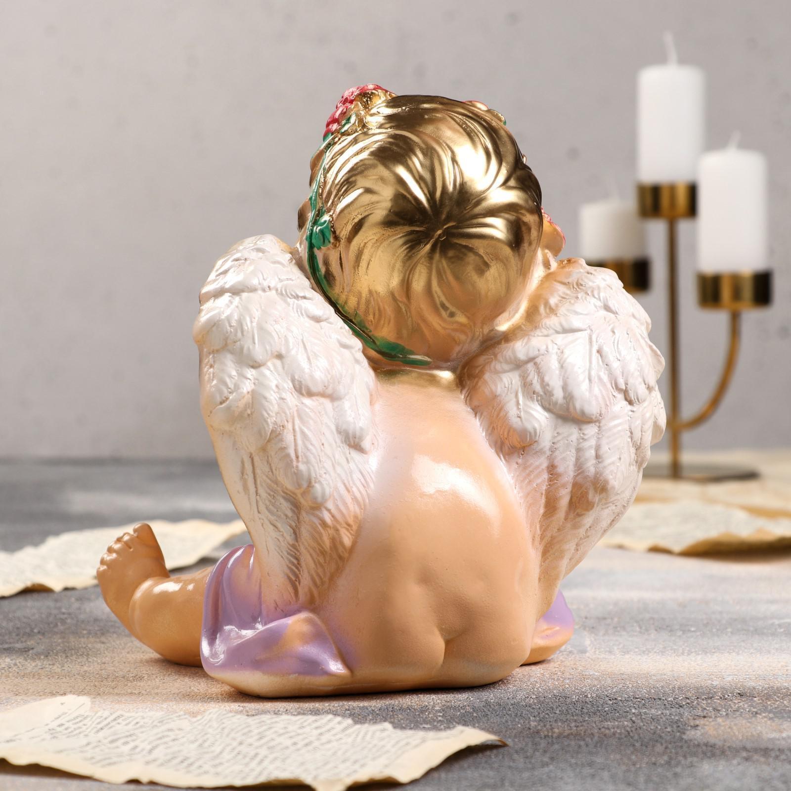 Статуэтка "Ангел сидит", бежевая, гипс, 23 см, микс