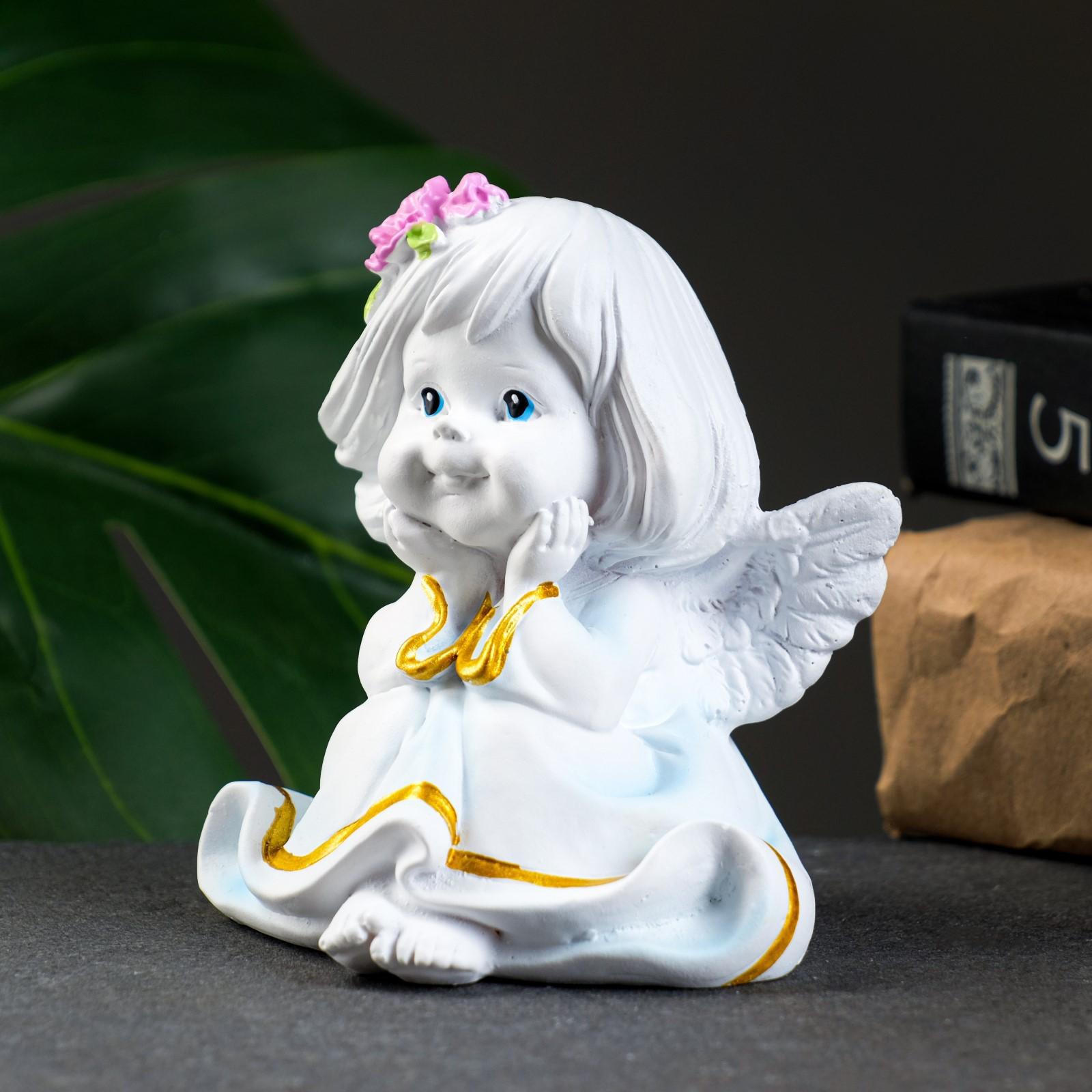 Фигура "Малышка-ангел с цветами в волосах" 7х8х9см