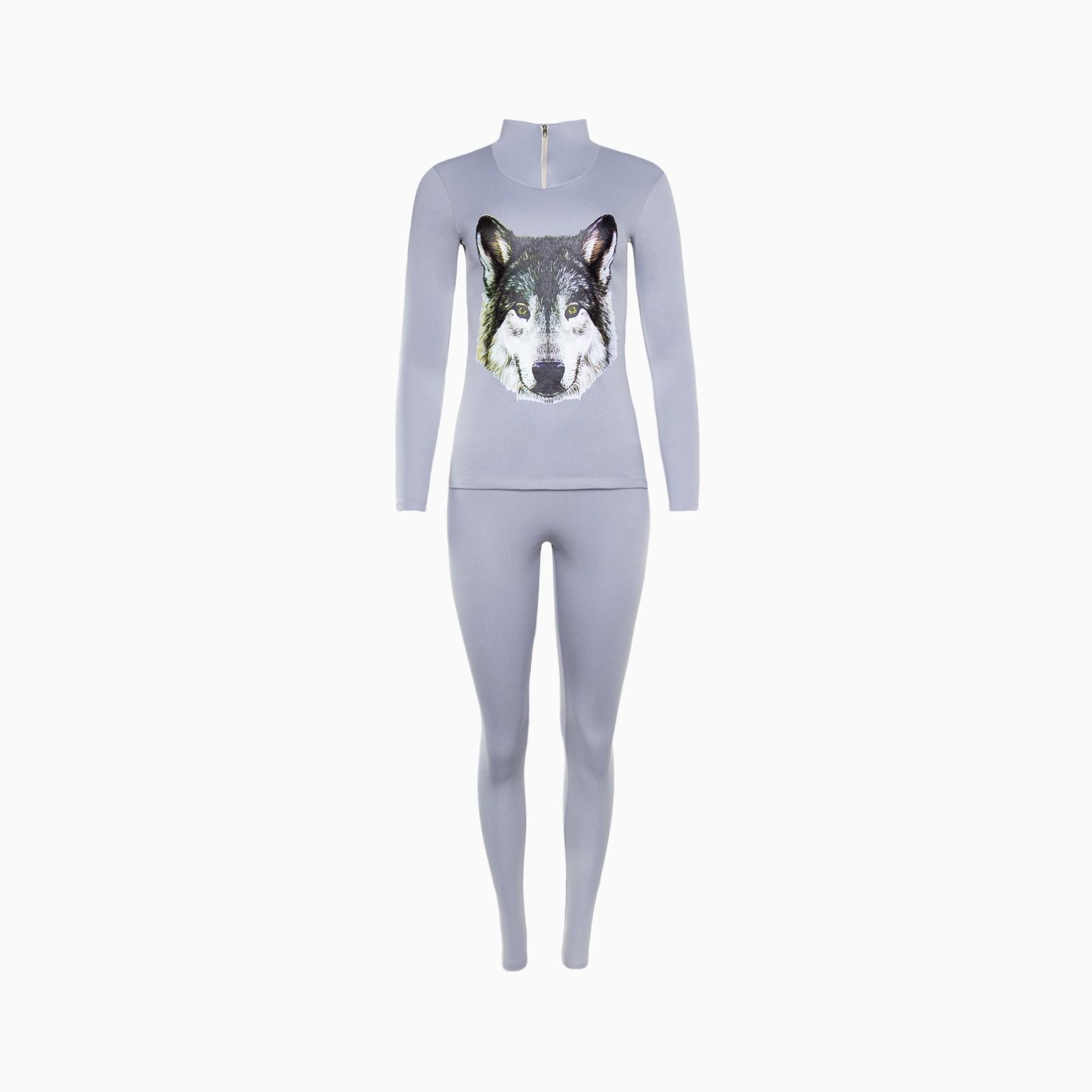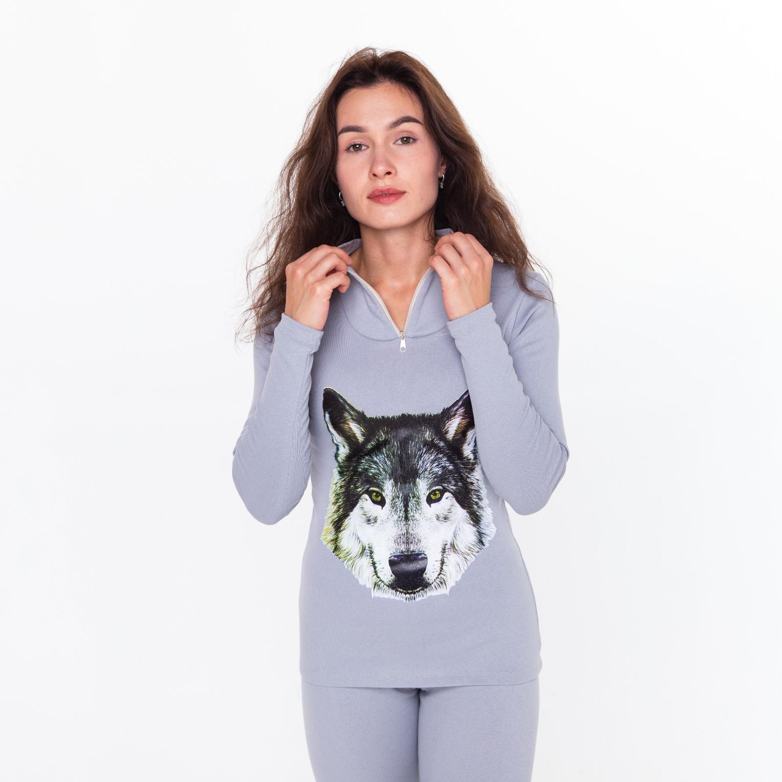 Термобельё женское (джемпер, леггинсы) принт волк, цвет светло-серый, размер 42 7894675