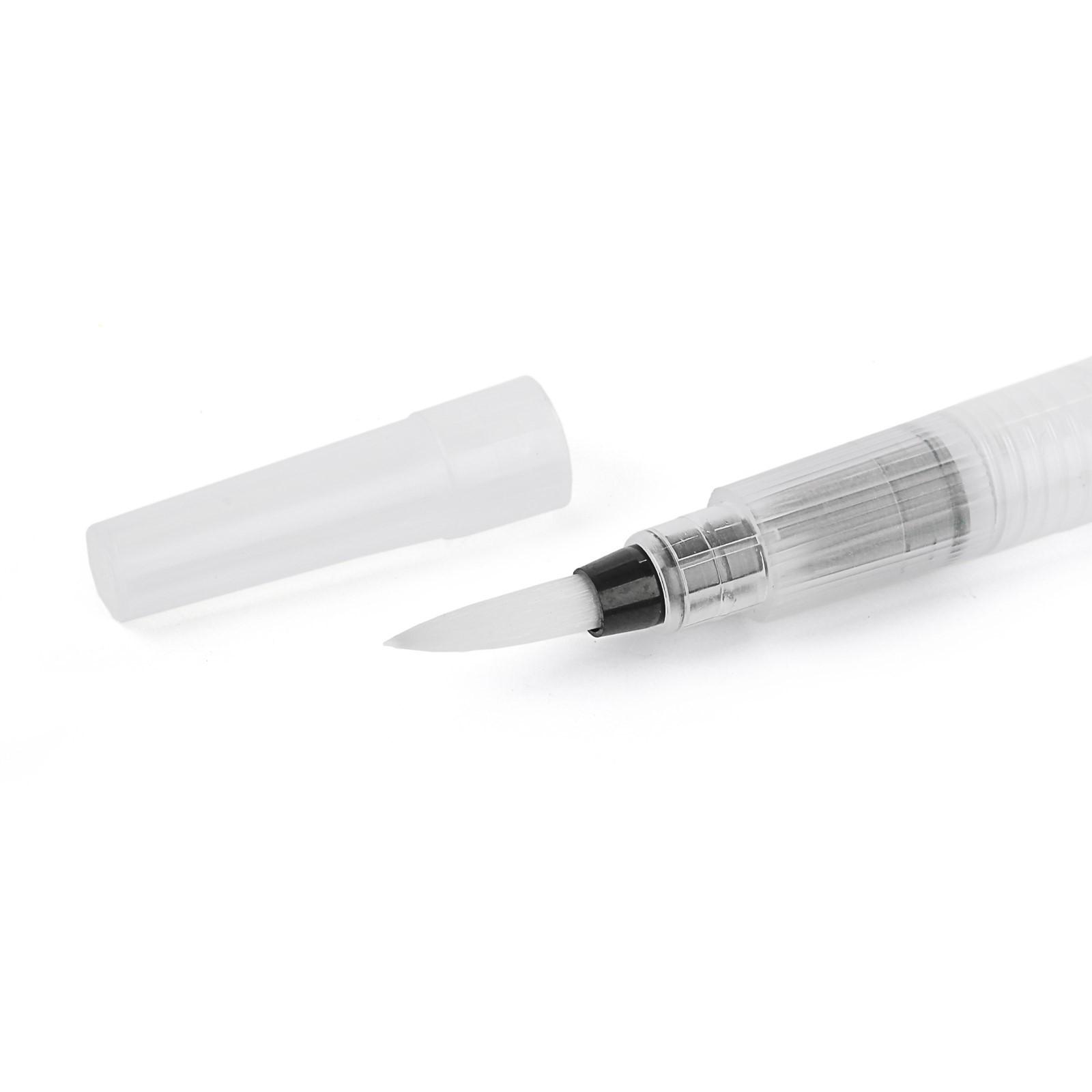 При нажатии на корпус щетки залитая в резервуар вода пуступает к пишущему узлу. Кисть отлично подходит для работы с акварельными карандашами и водорастворимыми красками.