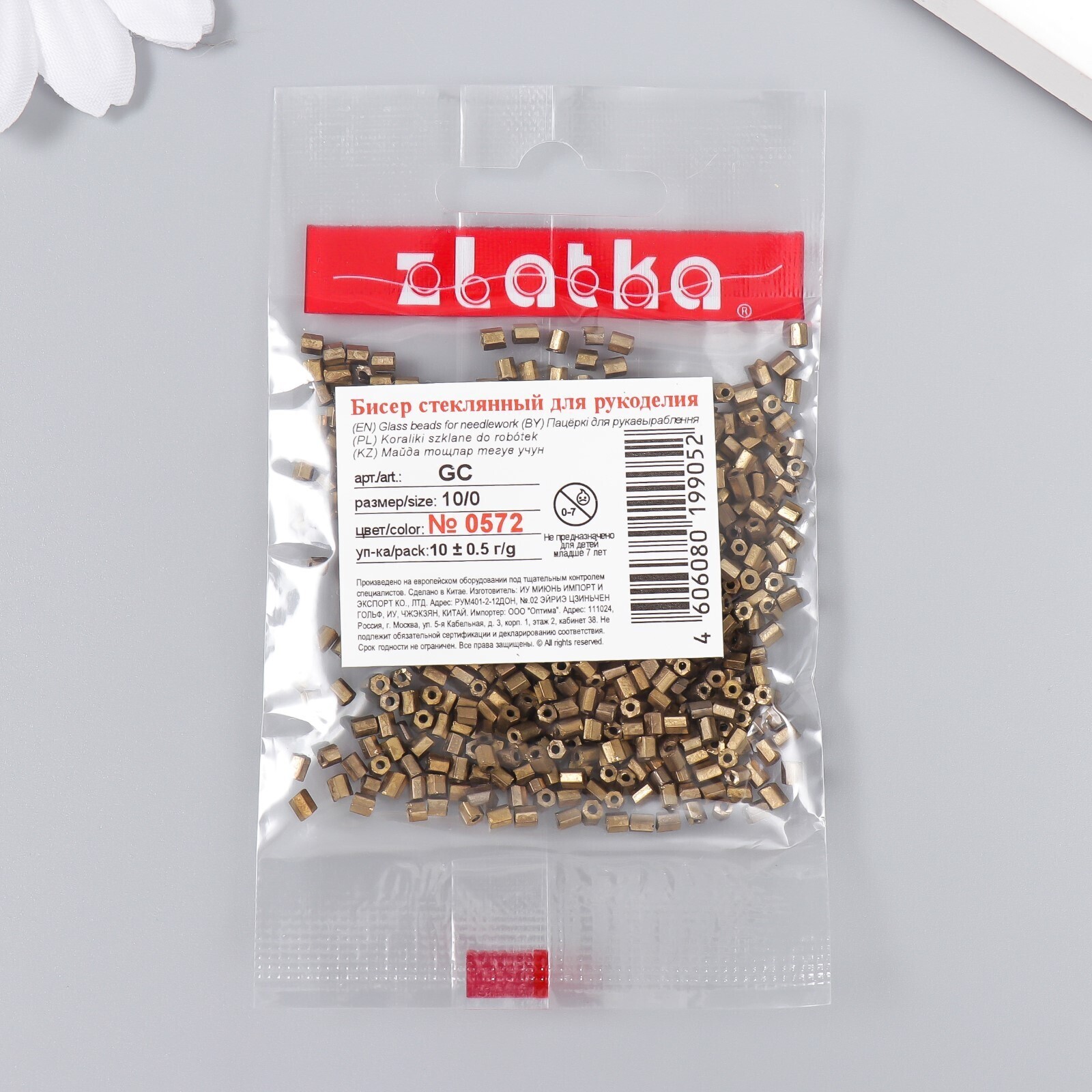 Бисер "Zlatka" рубка 10/0, 10 г, №0572 мат.бронза