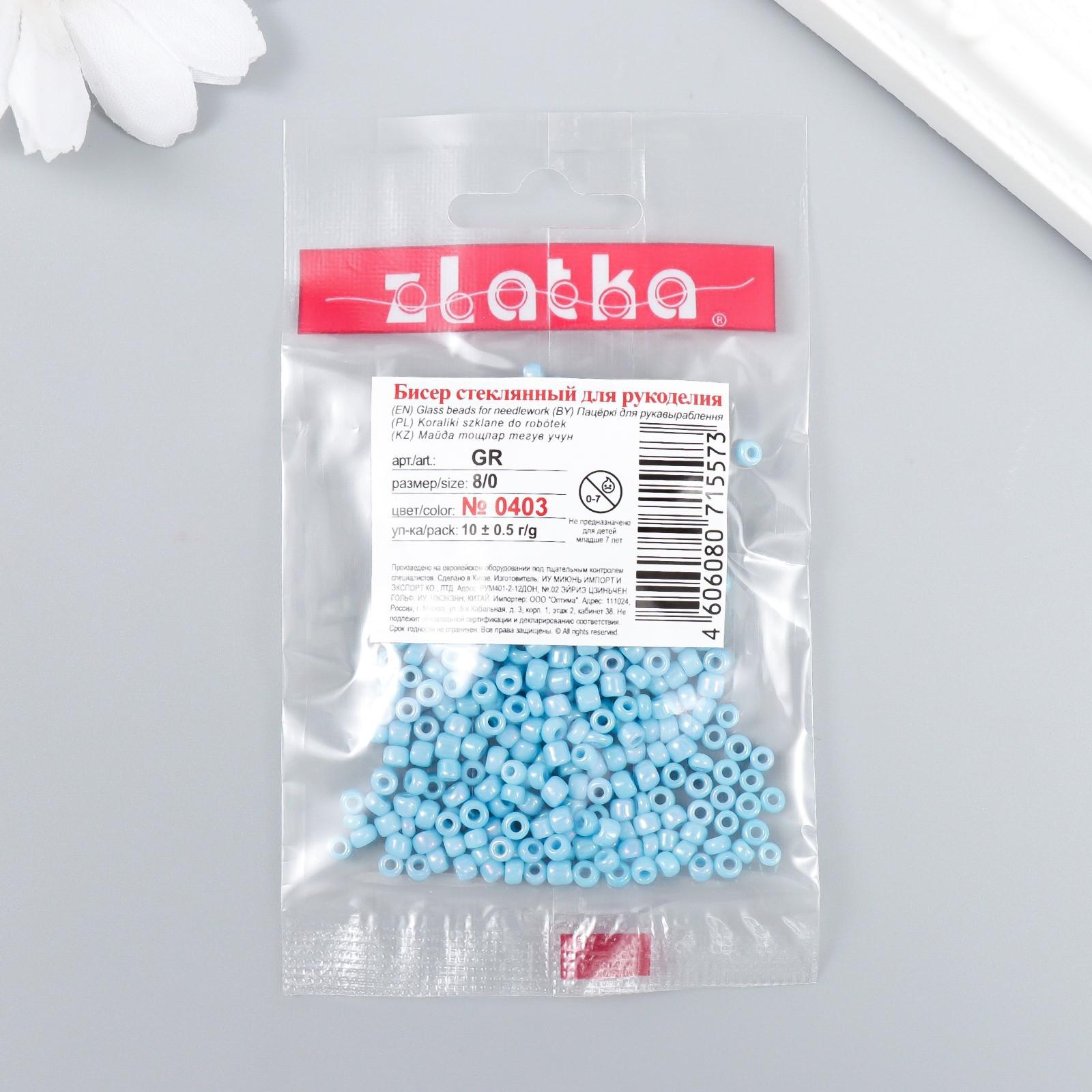 Бисер "Zlatka" 08/0, 3 мм, 10 г 0403 голубой