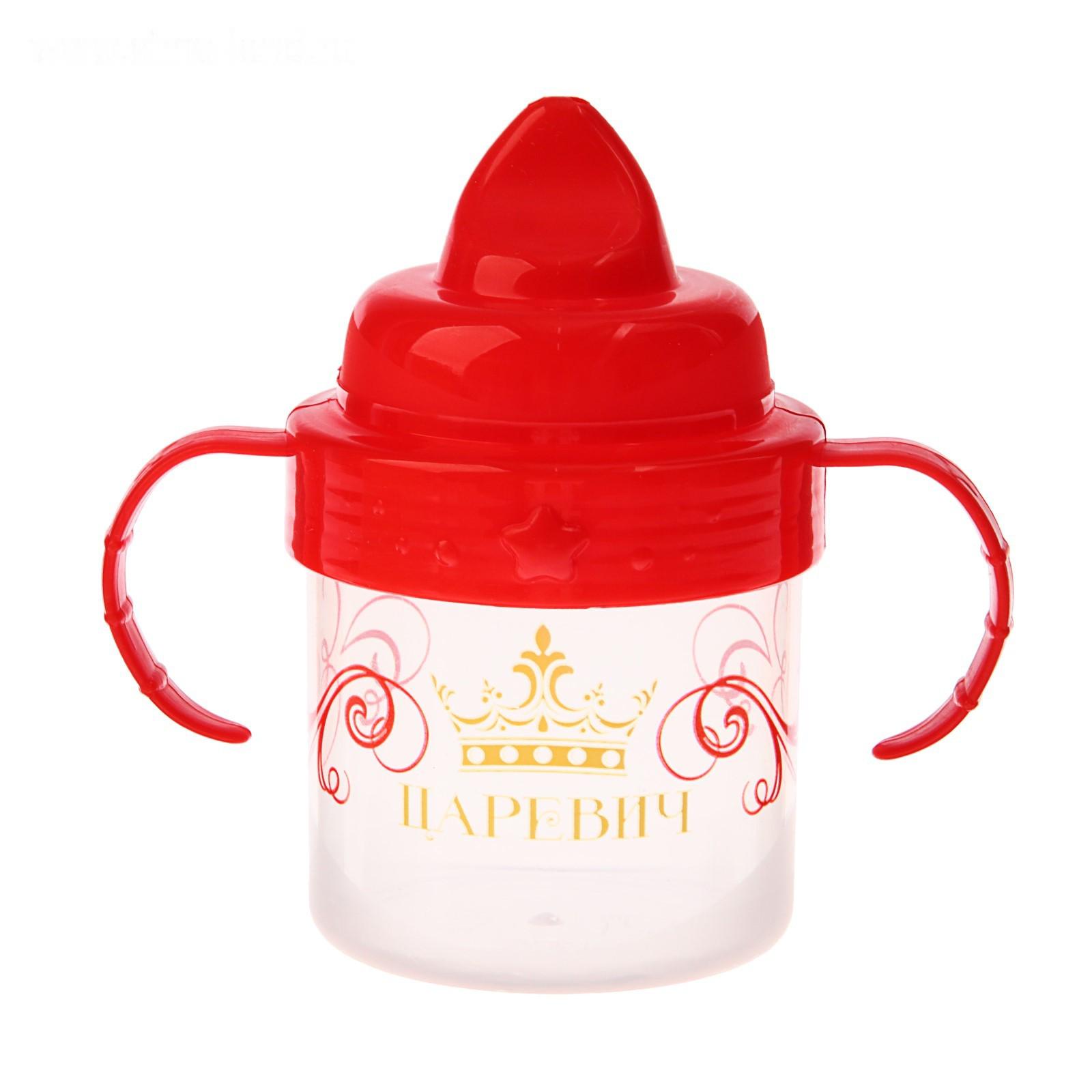 Поильник детский с твёрдым носиком «Царевич», с ручками, 150 мл, цвет красный 3725817