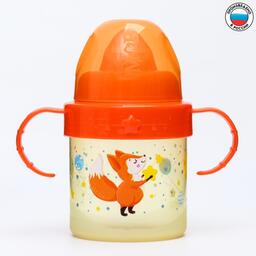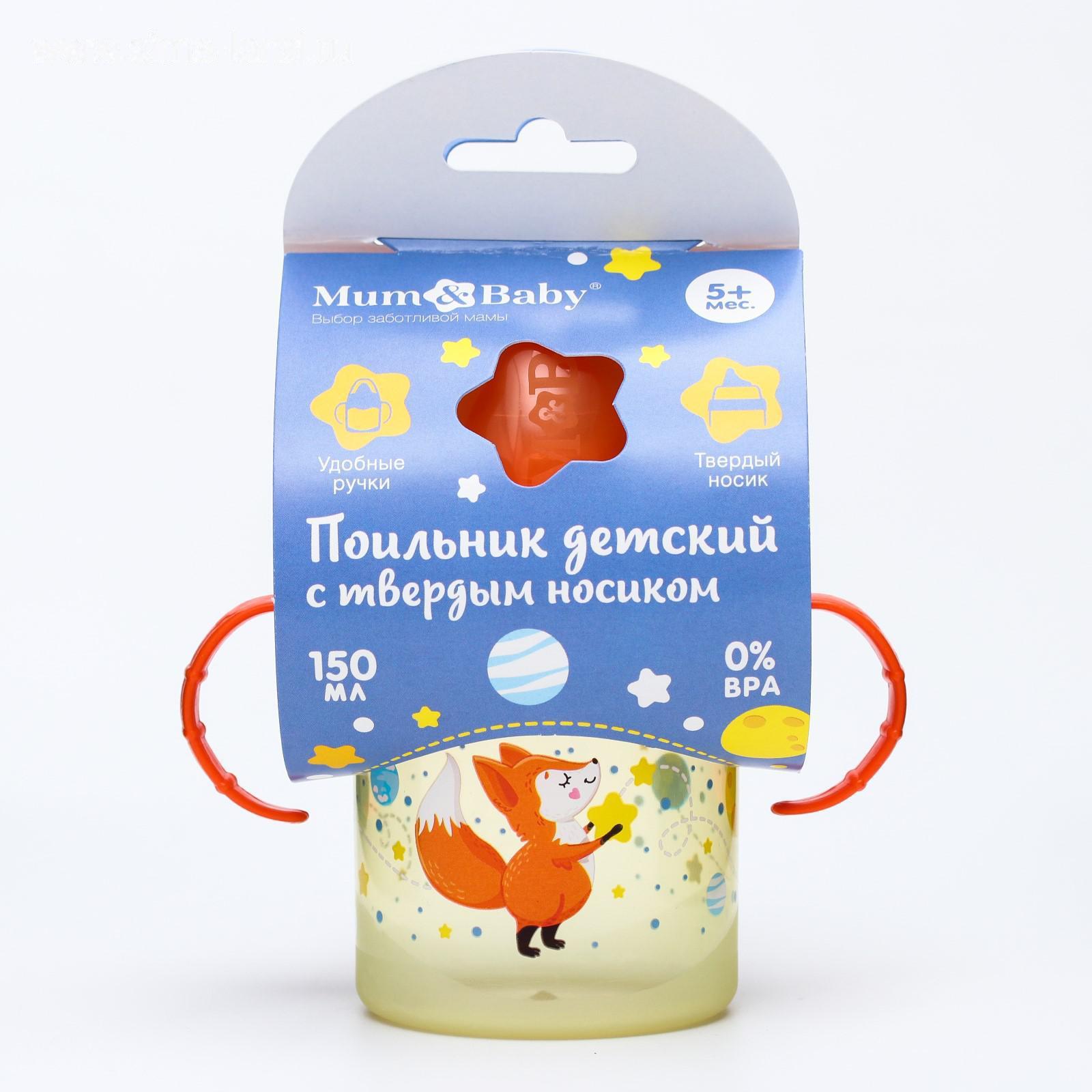 Поильник детский с твёрдым носиком «Лисята. Мамы и малыши», с ручками, 150 мл, цвет оранжевый
