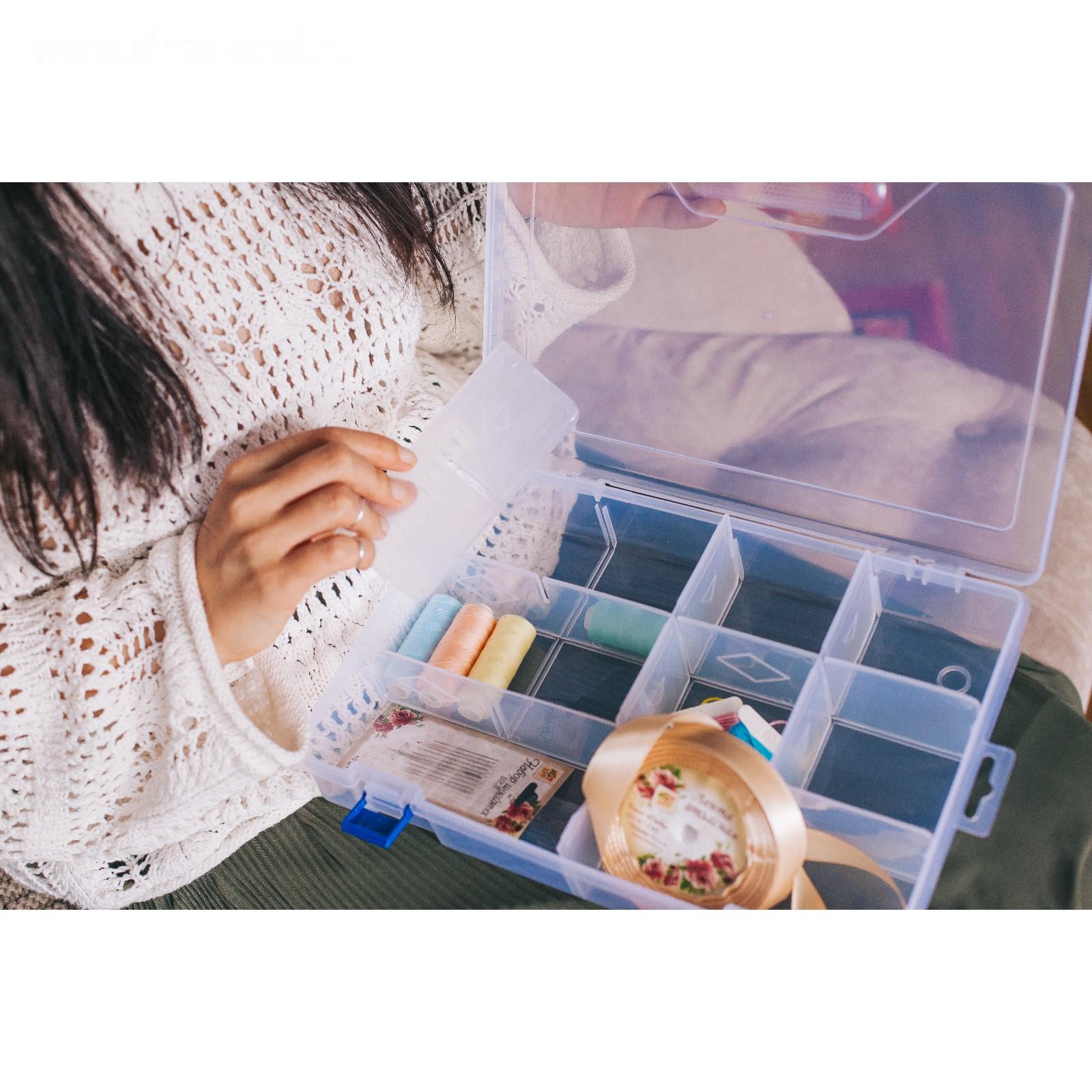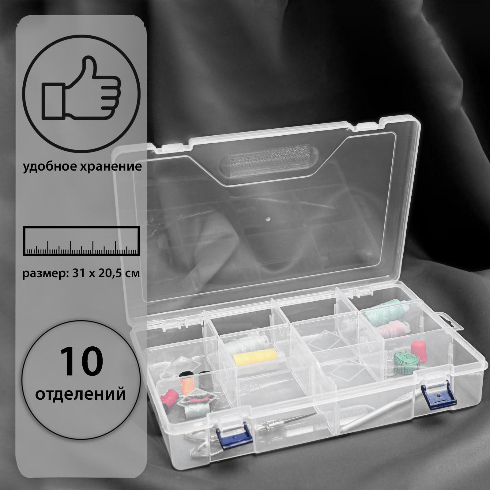 Органайзер для рукоделия, со съёмными ячейками, 10 отделений, 31 × 20,5 × 6 см, цвет прозрачный 4440606