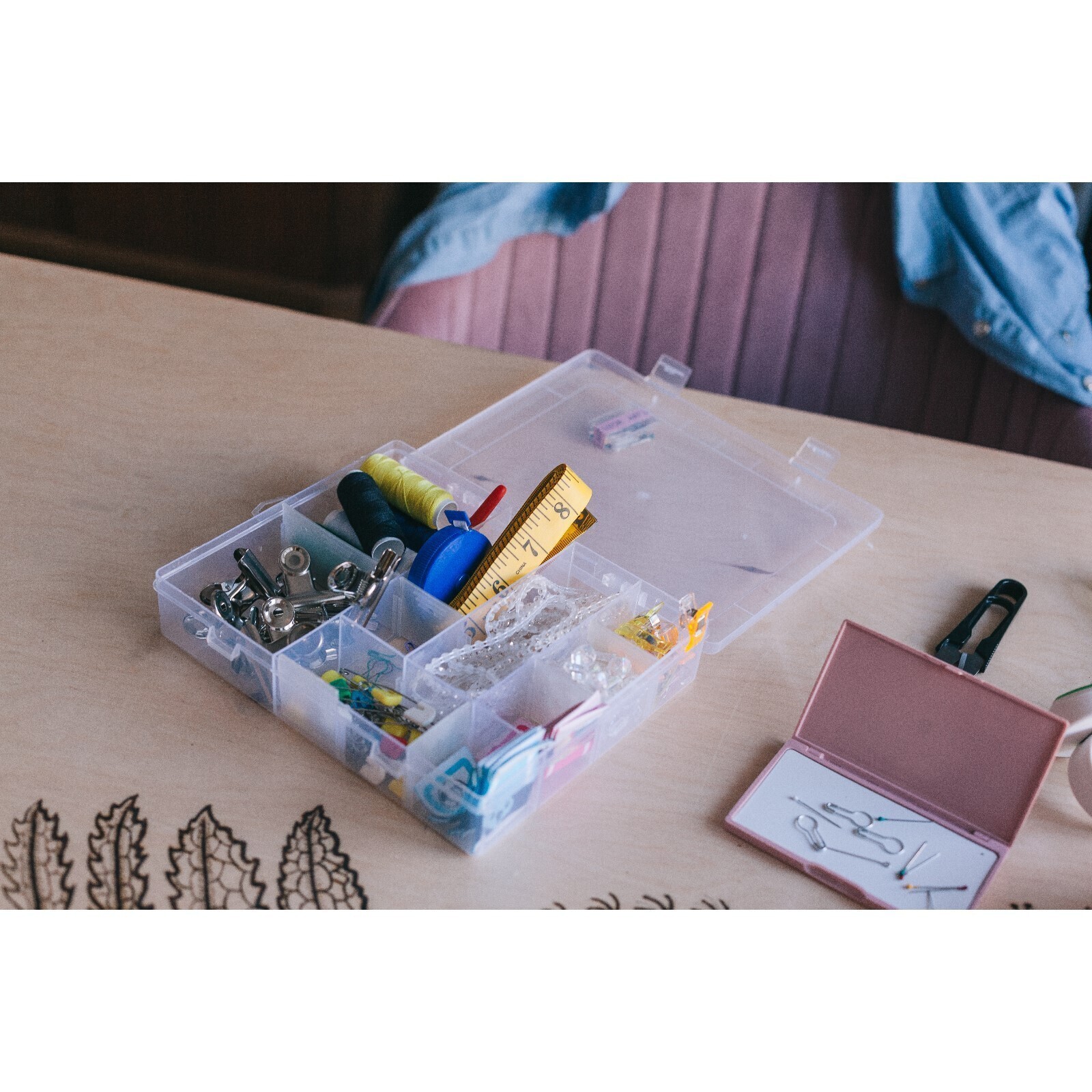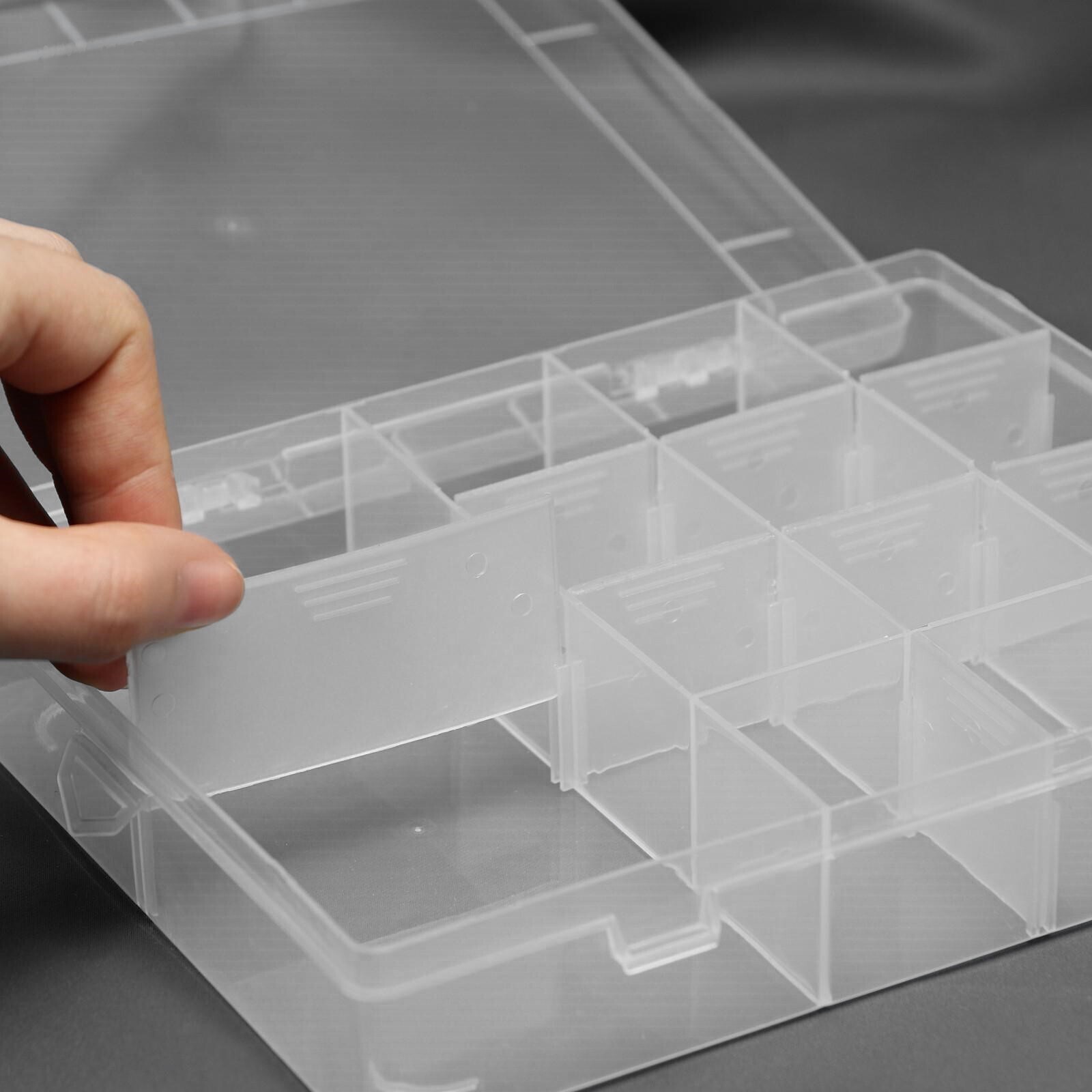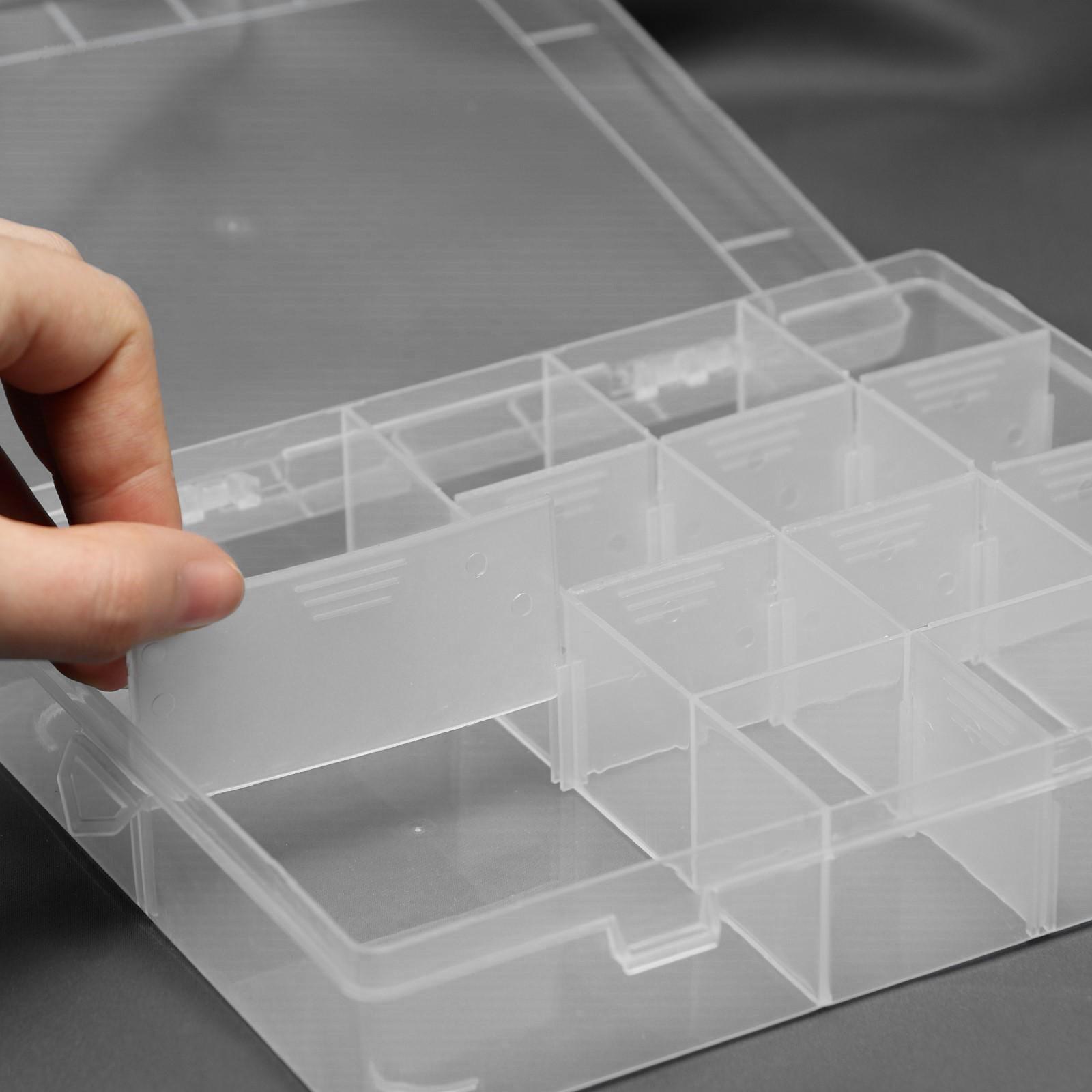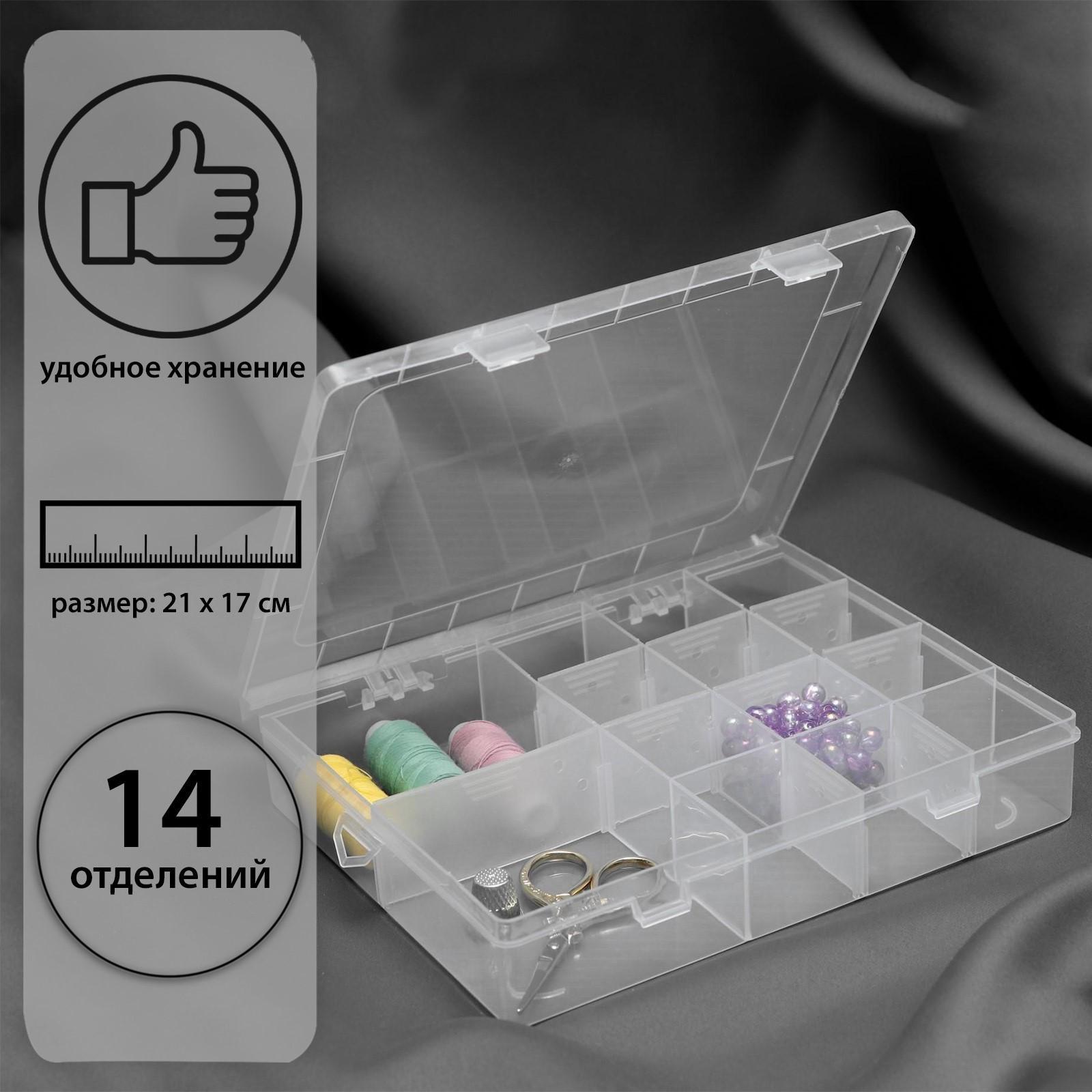 Органайзер для рукоделия, со съёмными ячейками, 14 отделений, 21 × 17 × 4 см, цвет прозрачный 3032786