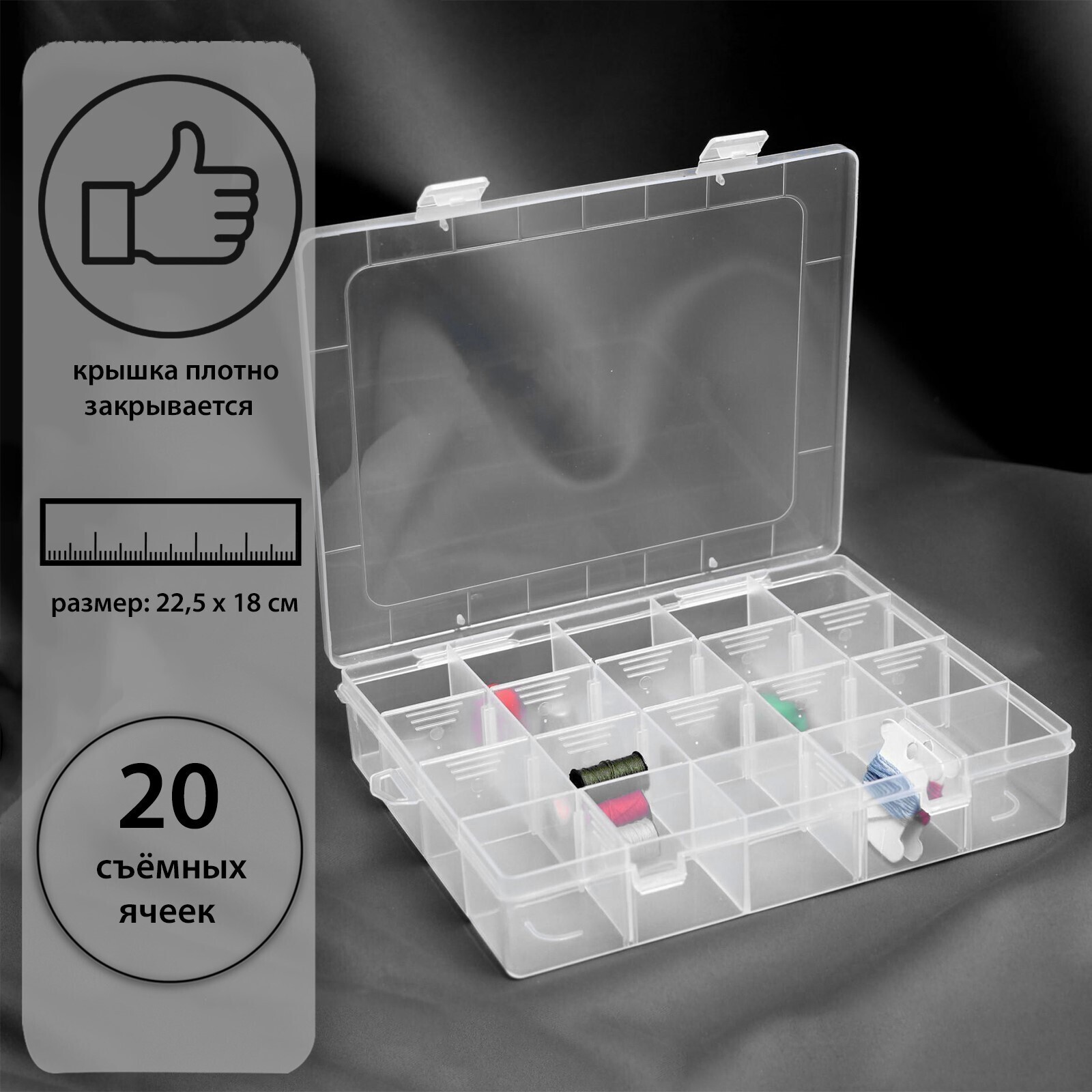 Органайзер для рукоделия, со съёмными ячейками, 20 отделений, 22,5 × 18 × 4 см, цвет прозрачный