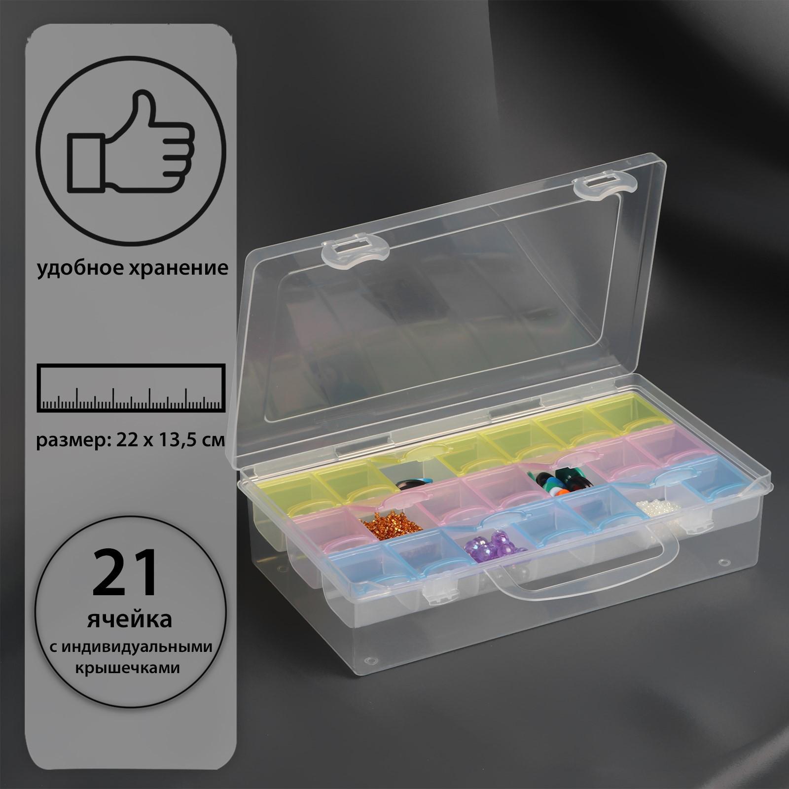 Органайзер для рукоделия, 21 отделение, 22 × 13,5 × 5 см, цвет МИКС