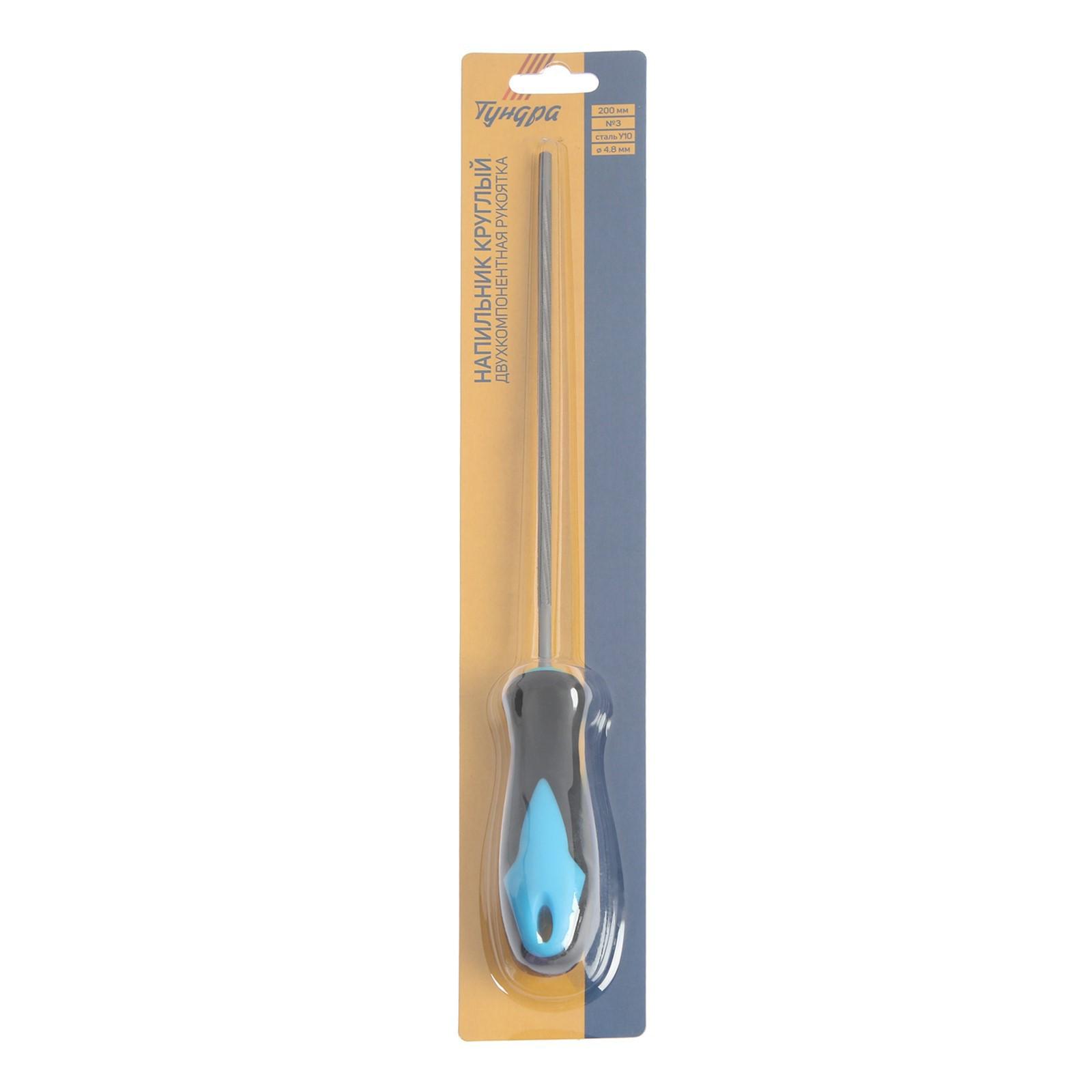 Напильник ТУНДРА, для заточки цепей с шагом 0.325", круглый, 2К рукоятка, 4.8 мм, №3, 200 мм