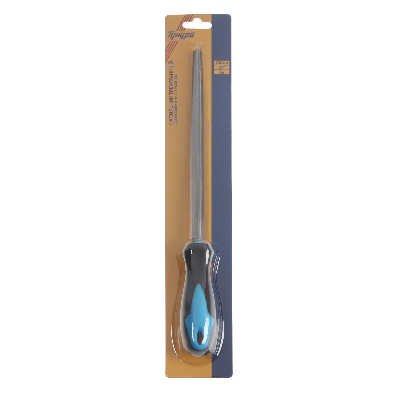 Напильник ТУНДРА, для заточки цепей пил, трехгранный, У10, 2К рукоятка, №3, 200 мм