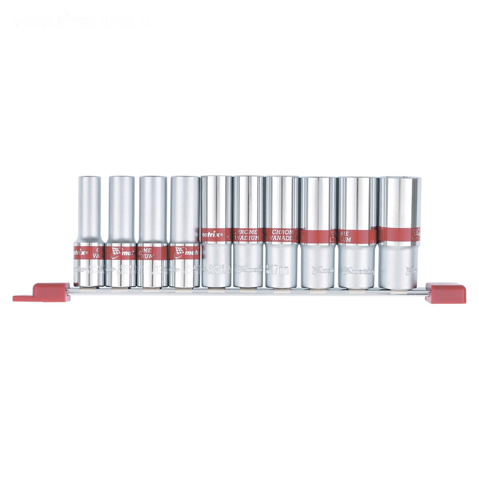 Набор удлиненных торцевых головок Matrix, 1/2", 6-ти гранные, CrV, 10 шт., 10-22 мм