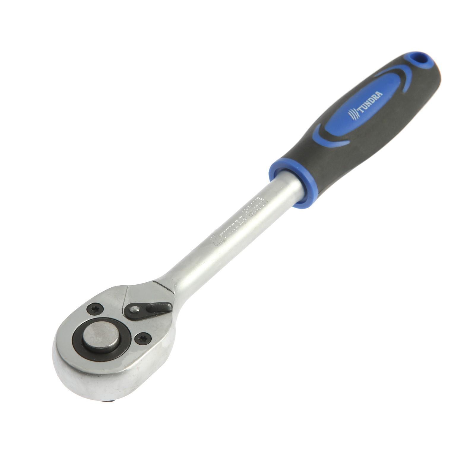 Трещотка оснащена эргономичной ручкой и механизмом переключения реверса.