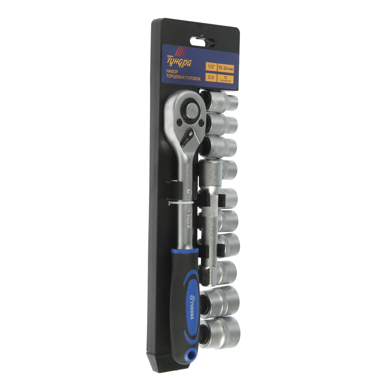 Набор торцевых головок ТУНДРА, трещотка, CrV, 1/2", 10 - 24 мм, 12 предметов