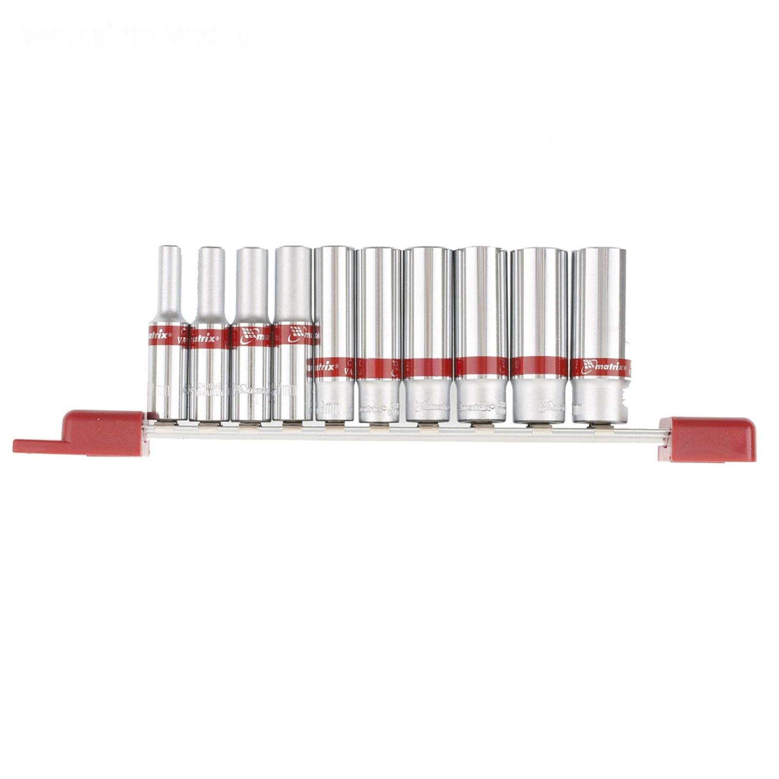 Набор удлиненных торцевых головок Matrix, 1/4", 6-ти гранные, CrV, 10 шт., 4-13 мм