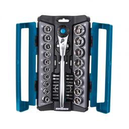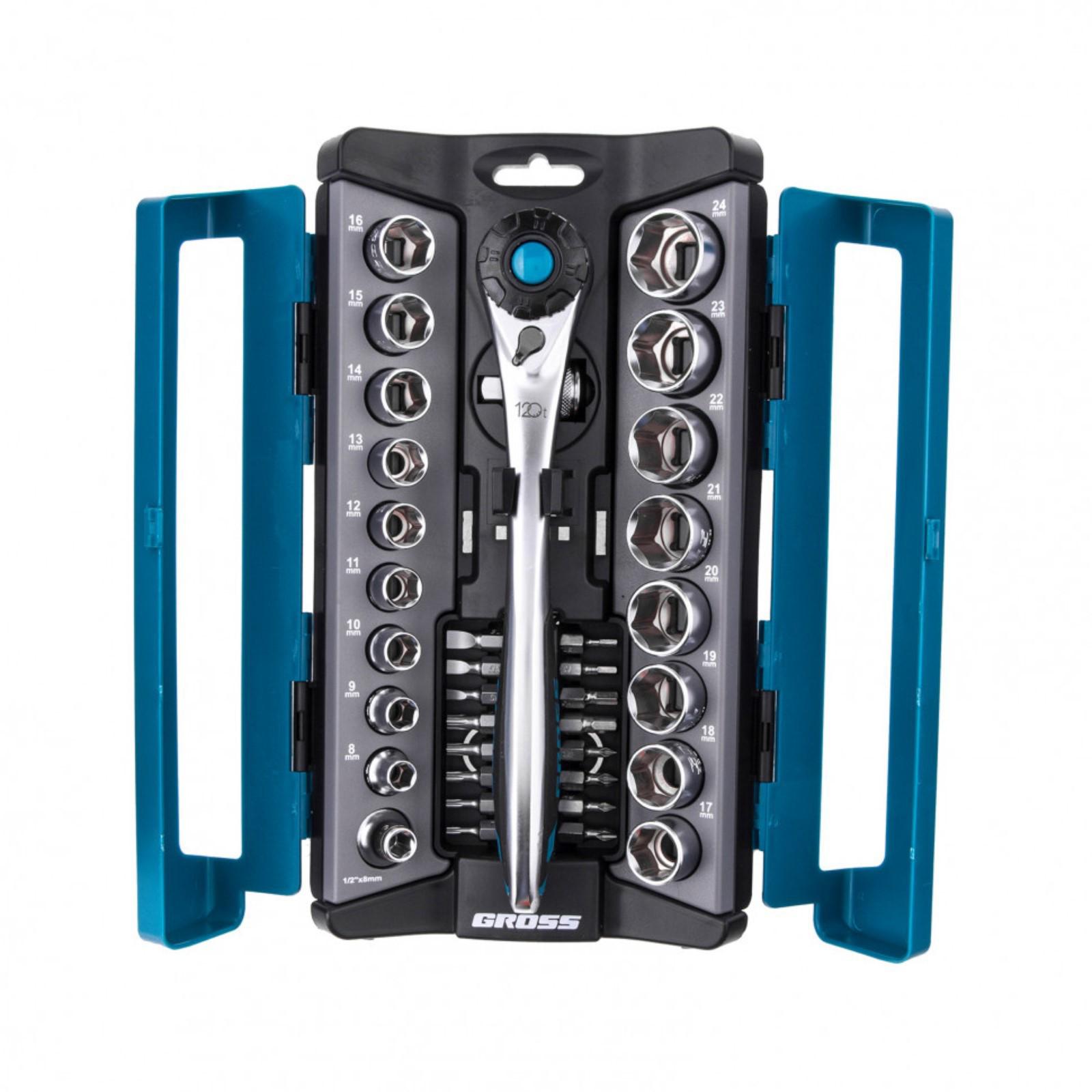Набор торцевых головок Gross 14145, 36 предметов, трещотка 120 зубьев, 1/2", 3/8", CrV