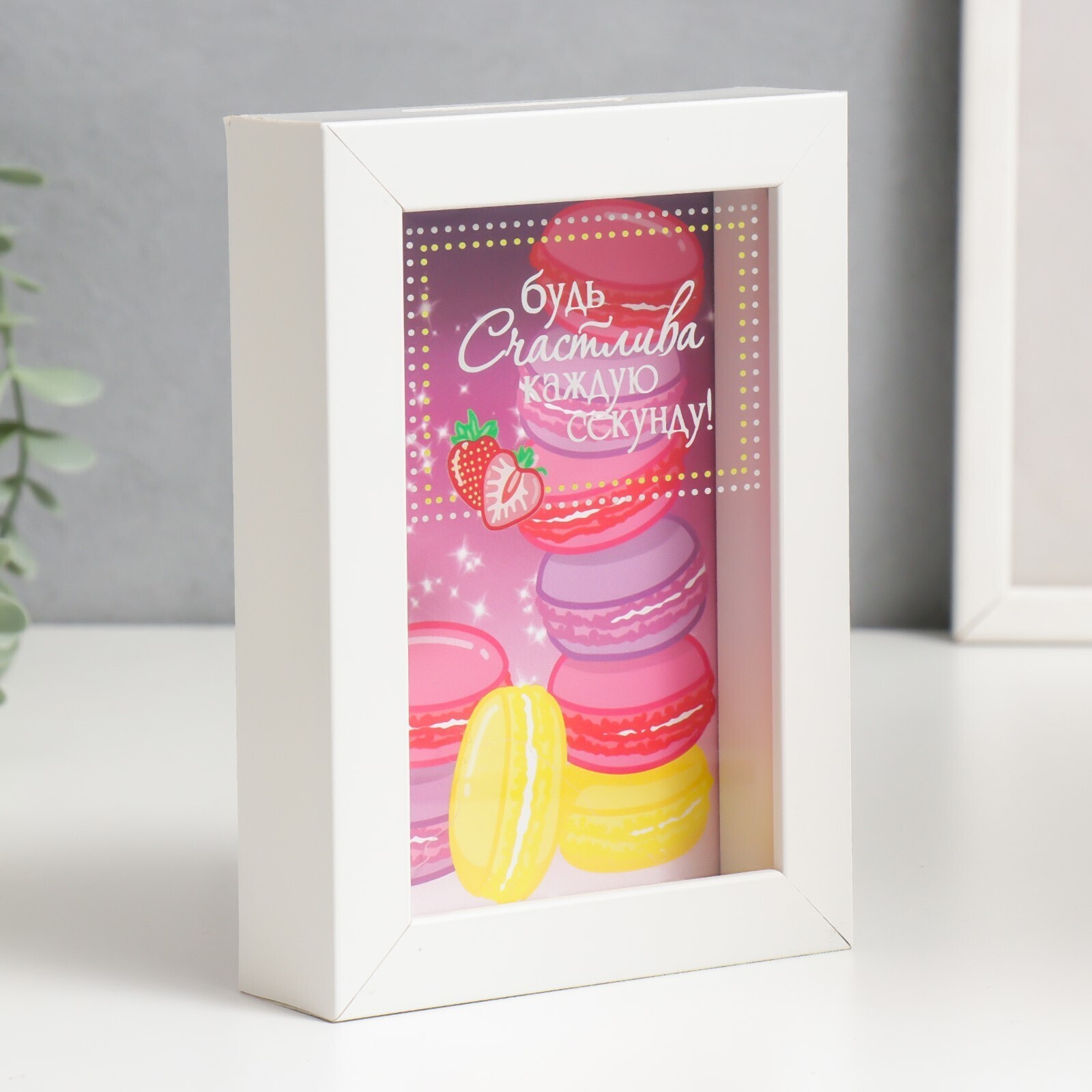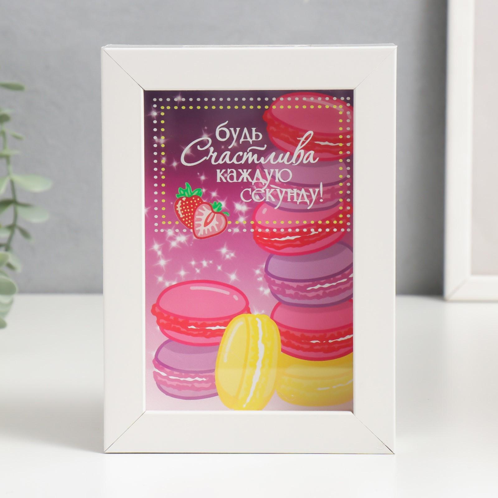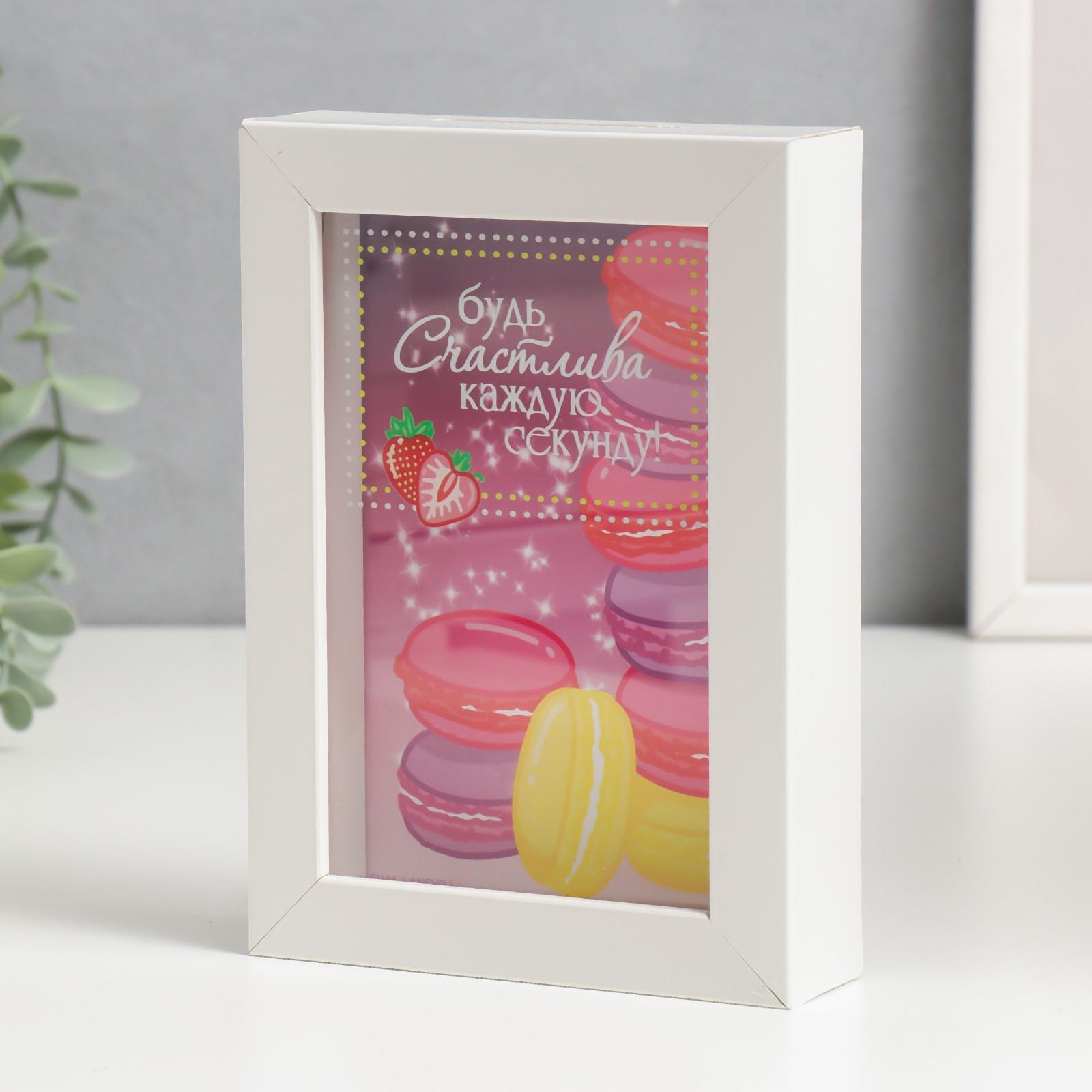 Копилка интерьерная пластик "Макаруны - Будь счастлива каждую секунду!" 17х12х3,8 см